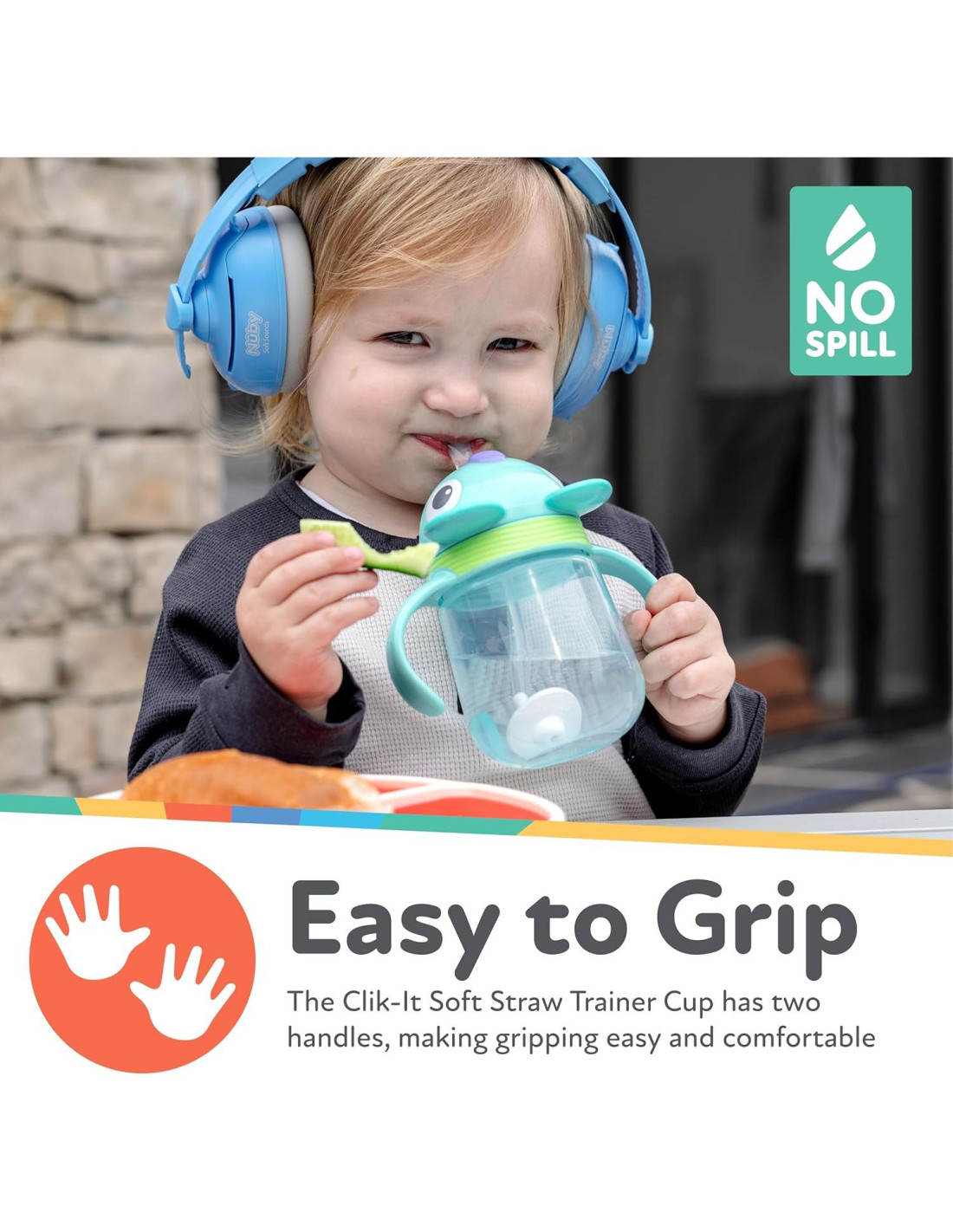 - Diseñada para manos pequeñas: La Taza Entrenadora de Pajita Suave Clik-It tiene dos asas, lo que hace que agarrar sea fácil y cómodo para manos pequeñas