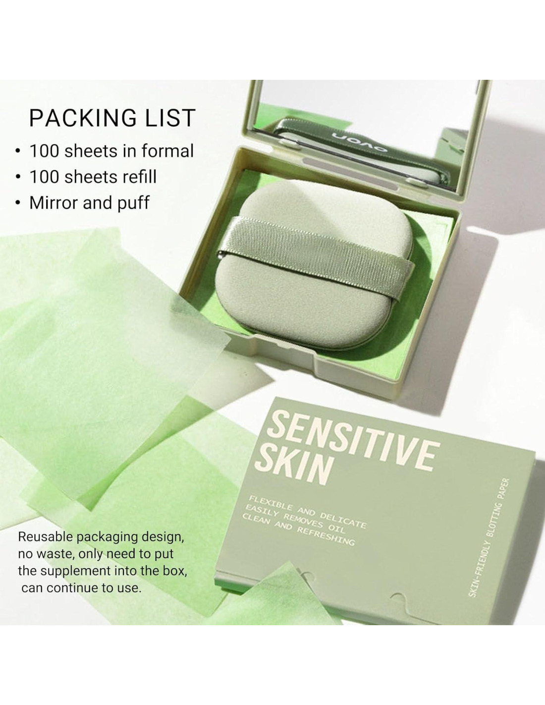 - El puff viene con papel adhesivo, se adhiere al papel absorbente de aceite, usa uno a la vez, no causará desperdicio. Empaque ligero, simple y lindo, se puede meter directamente en el bolsillo o mochila, muy conveniente de llevar.