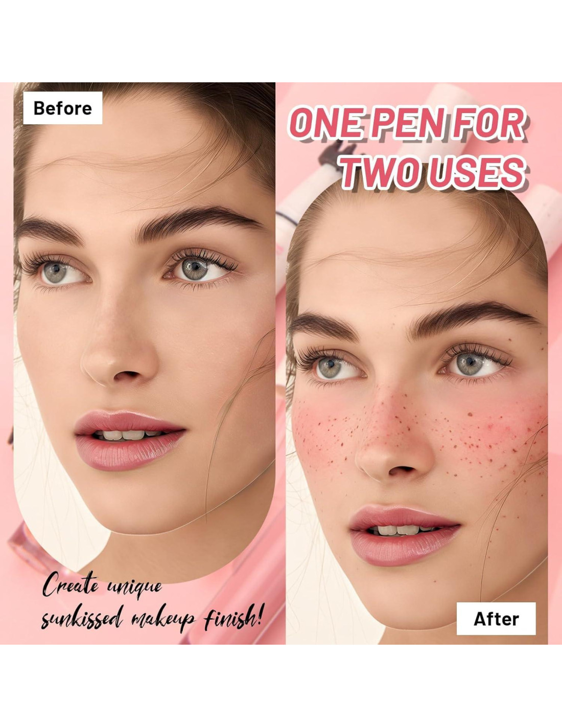 - UN LÁPIZ DE USO DUAL: Este Lápiz de Pecas combina las funciones de lápiz de pecas y lápiz de rubor líquido. Su diseño único satisface tus necesidades en ambos aspectos. El Sello de Pecas te permite tener un aspecto de pecas realista, y el Rubor Líquido Mate te hace lucir sonrojada y radiante, las esponjas te ayudan a difuminar el rubor fácilmente.