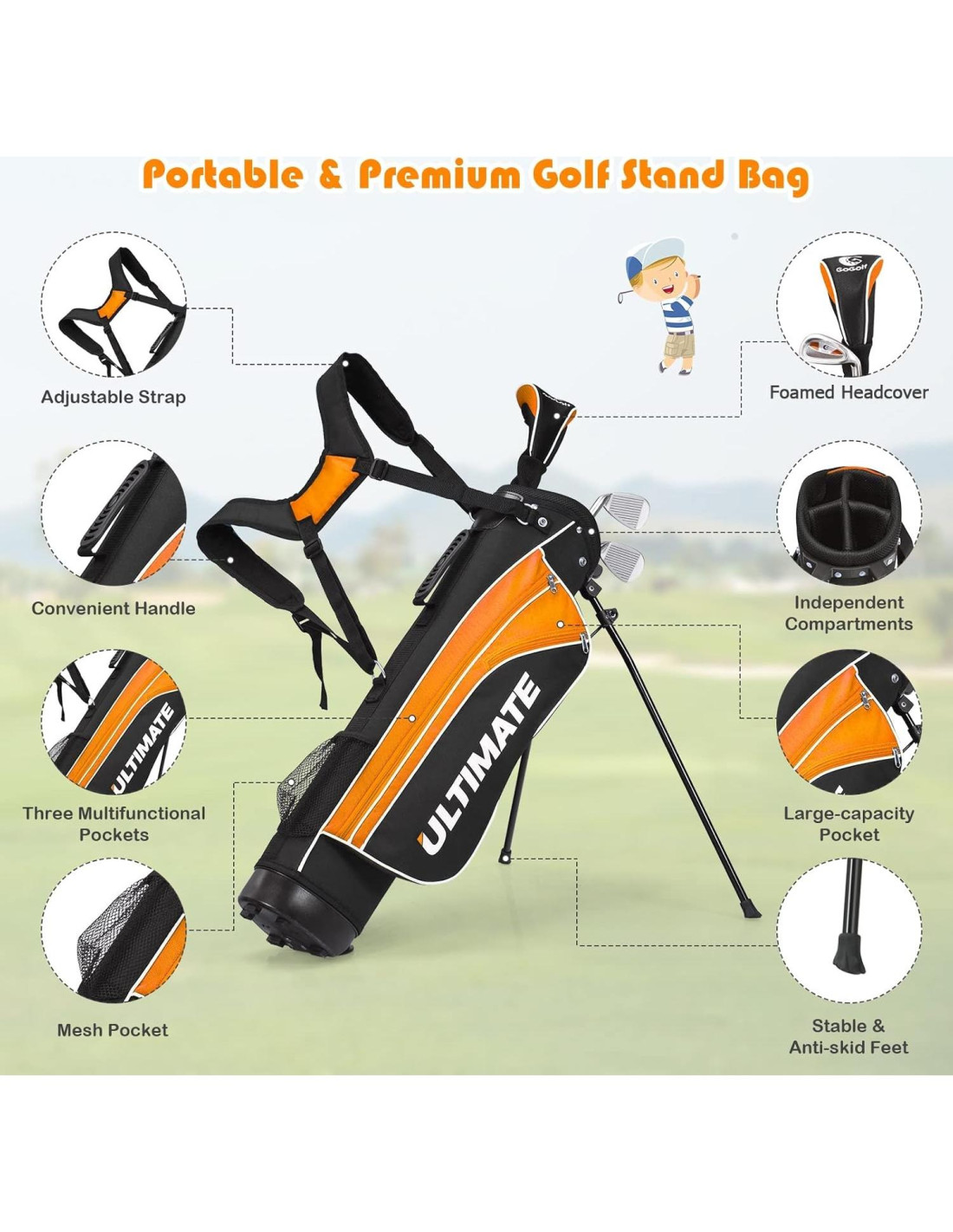 - [Diseño Portátil para Niños] : Este set de palos de golf juvenil mide 28 pulgadas (71,12 cm) y pesa 6.5 lbs (2,95 kg), lo que lo hace muy fácil de transportar y usar para los niños. Además, la bolsa de golf equipada cuenta con correas ajustables para adaptarse a niños de diferentes alturas.