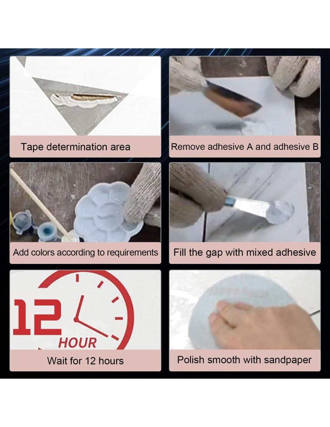 - Secado Rápido: El kit de reparación de fregadero de porcelana de fibra de vidrio mezcla el Grupo A y el Grupo B en una proporción de 1:1, se aplica en el lugar deseado y solo tarda 12 horas en solidificarse completamente, secándose rápidamente y rejuveneciendo.