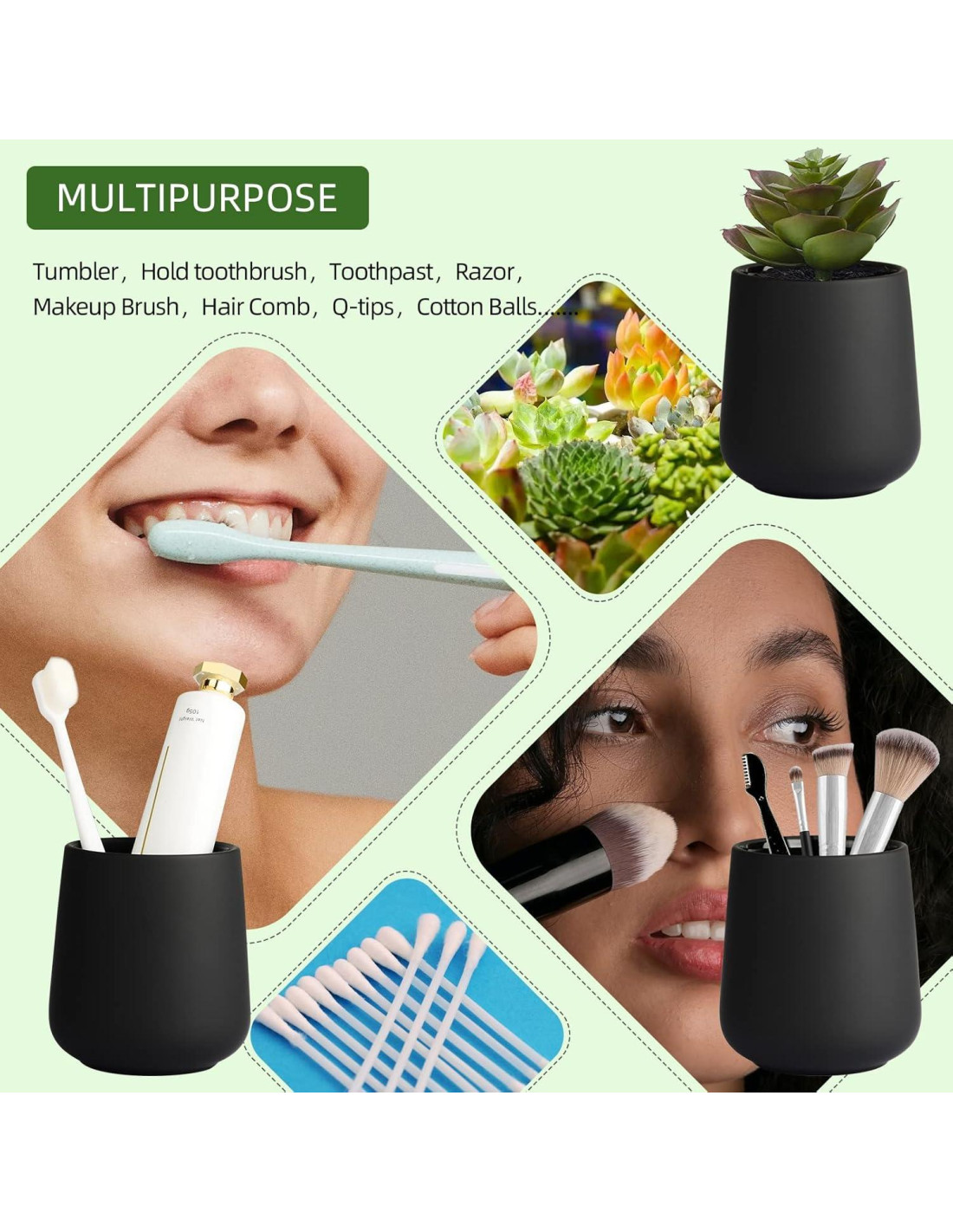 - Soporte para Cepillos de Dientes/Vaso: este vaso de 10.5 oz (297 ml) se adapta a la mayoría de los cepillos de dientes, pasta de dientes y maquinillas de afeitar. Hecho de cerámica sin plomo, también organiza brochas de maquillaje, bolas de algodón, hilo dental u otros accesorios de baño