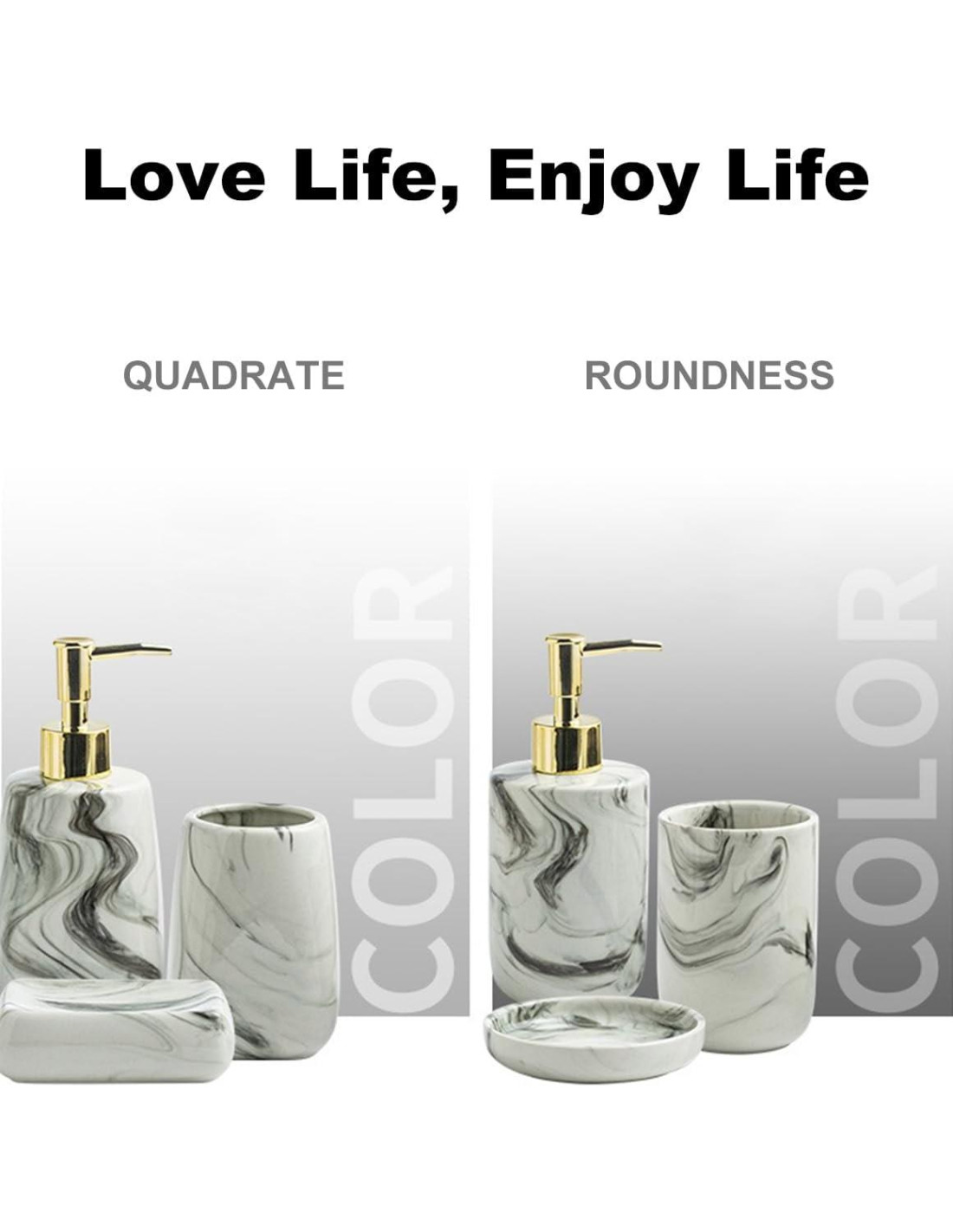 - Diseño Estilo Mármol Adecuado para baño, cocina, spa, hotel, lavandería o hogar. El juego de dispensador de jabón de baño estilo mármol es un gran regalo para amigos o familiares que aman los decoradores de cerámica.