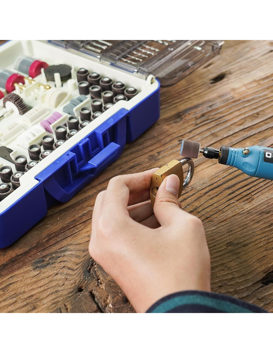 - [Versatilidad Todo-en-Uno] - Con 508 piezas cuidadosamente seleccionadas, este kit de herramienta rotativa cubre todas tus necesidades de DIY: lijado, pulido, molienda, perforación, corte y tallado. Ideal para trabajos en madera, metal, vidrio, cerámica y más. Perfecto tanto para mejoras en el hogar como para pasatiempos.