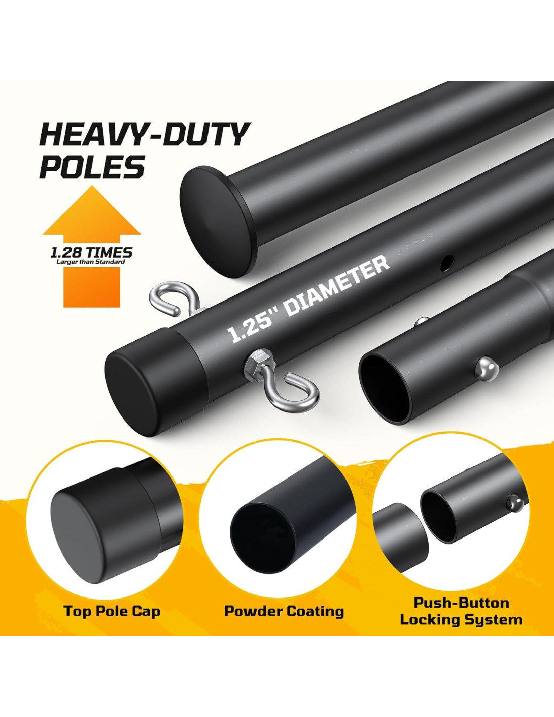 - Postes de Acero de Alta Resistencia y Estacas de Tierra de 9 Pulgadas (22.86 cm): Los postes de 1.25'' (3.18 cm) de diámetro con un grosor de pared de 0.8 mm proporcionan una estabilidad y durabilidad superiores. Combinados con estacas de tierra de 9 pulgadas (22.86 cm), aseguran que tu red de bádminton se mantenga segura y erguida, incluso durante partidos intensos. Diseñados para máxima estabilidad en entornos exteriores, ya sea para jugar en el jardín o en torneos