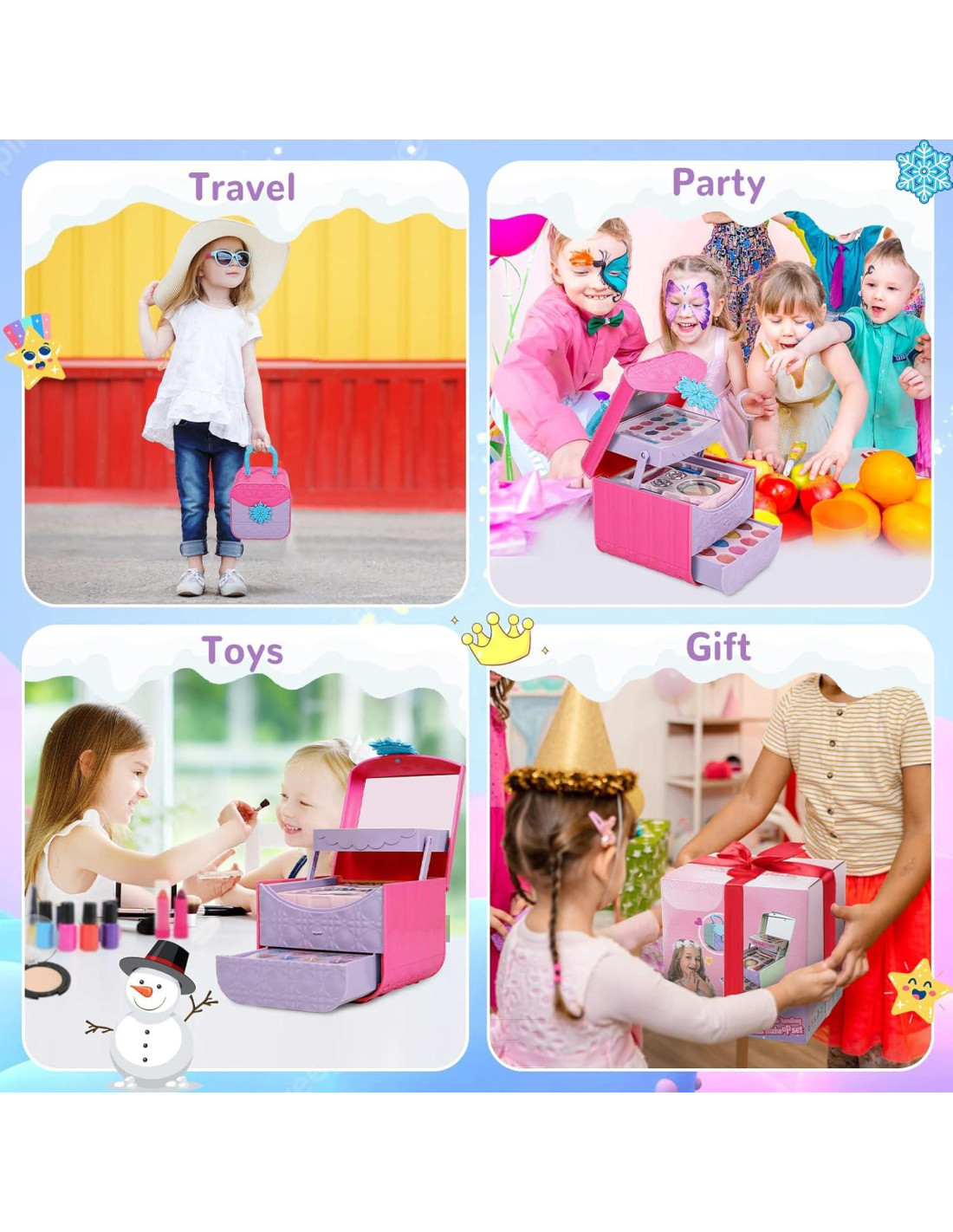 - Satisfaciendo el sueño de princesa de las niñas, cada niña tiene un corazón femenino, siempre sueñan con cuentos de hadas, y debemos proteger la inocencia del niño y el sueño de la princesa. El kit de maquillaje para niñas utiliza una caja trapezoidal única y un diseño de botón de copo de nieve, atendiendo al amor de los niños por Frozen. Un empaque simple y moderno puede hacerlo adecuado como el mejor regalo para niñas de 3 a 8 años en cumpleaños, Día de San Valentín, Acción de Gracias, Halloween, Navidad y otros días.