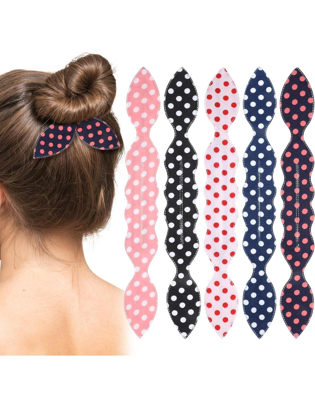 - [Diseño Elegante] Nuestro torcedor de moño deft utiliza la forma de oreja de conejo y está decorado con polka dot, cuando se usa para atar su cabello en un moño, parece un par de orejas de conejo que lucen vívidas y añade creatividad y estilo a su peinado, resaltando su apariencia.