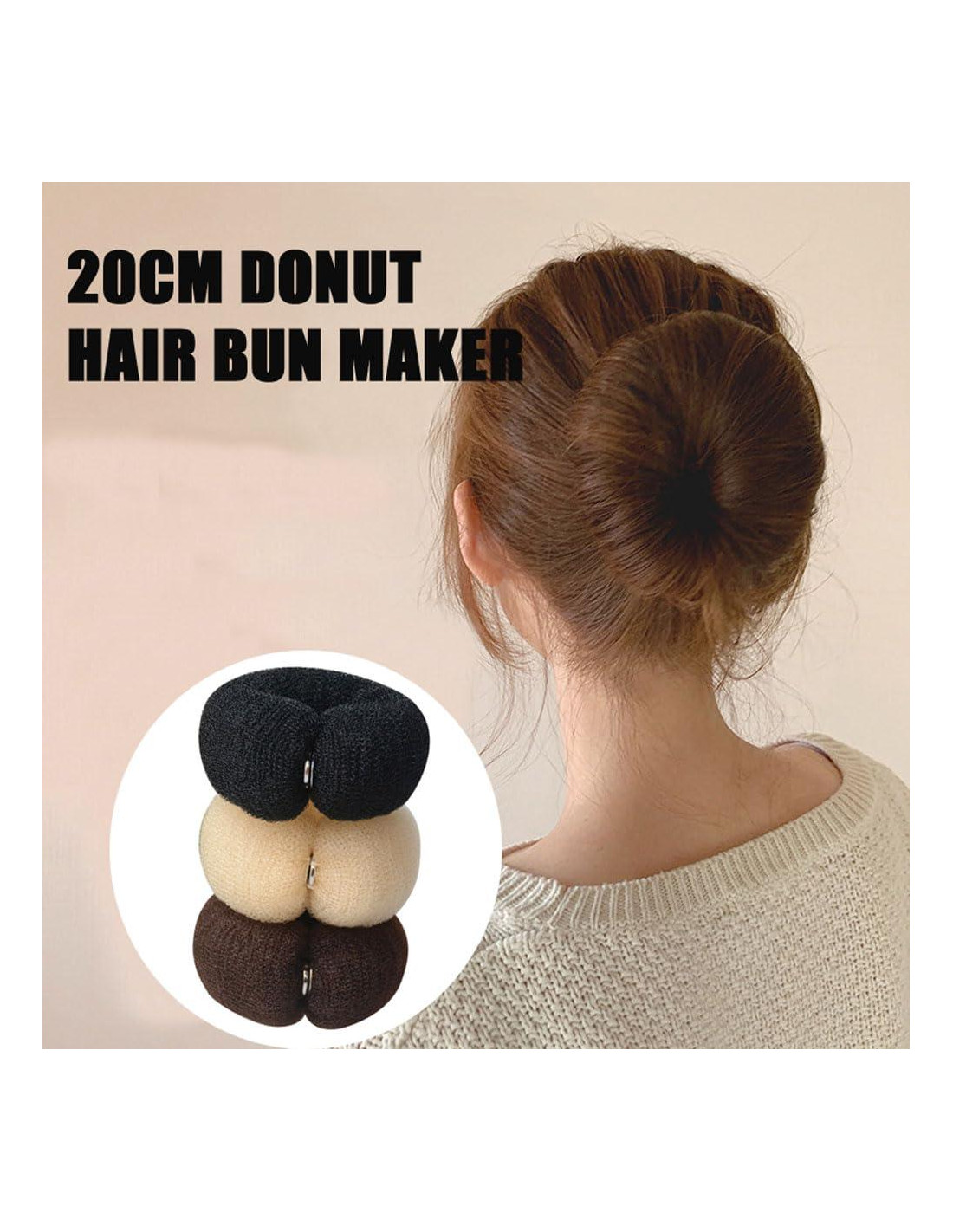 Descripción del producto: Especificación: Nombre del producto: 2Pcs Donut Hair Bun Maker Color: Caqui, Beige, Negro Material: nylon Tamaño del producto: aproximadamente 20cm Características: Diseñado para niñas y mujeres, esta herramienta para moños es adecuada para personas con cabello corto y delgado. El diseño innovador te permite hacer fácilmente bonitos chignons que son tanto elegantes como fuertes, lo que lo convierte en una buena herramienta para tu peinado diario. Las herramientas para hacer moños son muy fáciles de usar, lo que te permite lograr resultados de salón en casa. Estas herramientas son adecuadas para cualquier ocasión, ya sea un peinado diario, una fiesta o una clase de baile, y te ayudarán a crear una variedad de peinados, desde un recogido elegante hasta un moño desordenado casual. Hechas de nylon, muy suaves, estos moldeadores de moños son cómodos de usar y asegurarán que se mantengan en su lugar todo el día sin causar ninguna incomodidad.