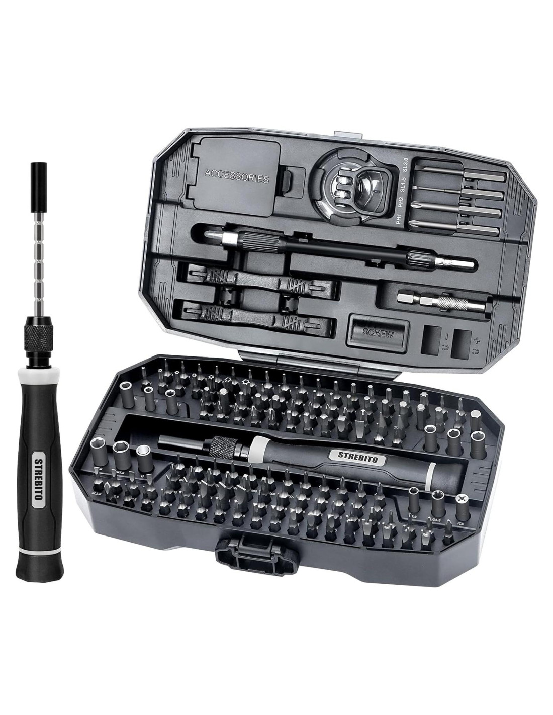 - Juego de Destornilladores de Precisión 153 en 1 STREBITO fabrica un juego de destornilladores de calidad premium, de grado profesional y un kit de herramientas electrónicas que ofrecen el rendimiento, durabilidad y precisión necesarios para hacer el trabajo correctamente. Si tienes algún problema con tu kit de herramientas para pc, simplemente contacta al servicio al cliente para obtener ayuda con la solución de problemas. Compra el kit de destornilladores para laptop STREBITO con confianza