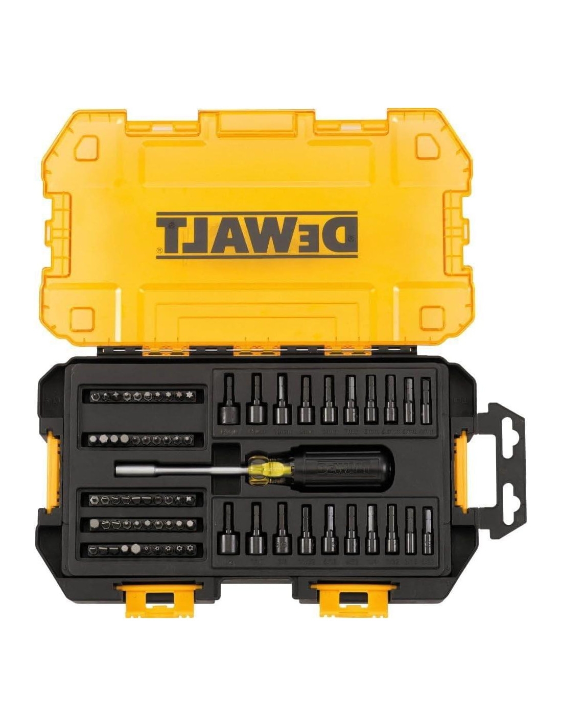 El Juego de 70 Piezas de Puntas de 1/4 de pulgada y Controladores de Tuerca viene en un estuche duradero y bloqueable para almacenar sus herramientas de manera segura. El juego de brocas DEWALT también incluye una bandeja interna extraíble para versatilidad.