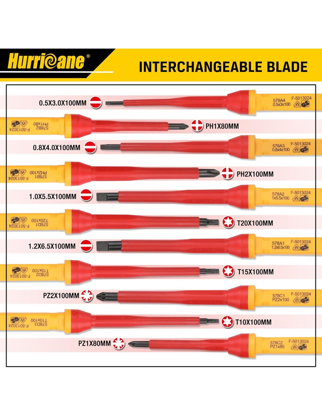 - Uso Profesional y DIY: El kit de destornilladores aislados HURRICANE de 13 piezas satisface la mayoría de tus necesidades. El mango ergonómico antideslizante reduce la fatiga, mientras que la caja compacta mantiene las herramientas organizadas para garajes domésticos o sitios de trabajo