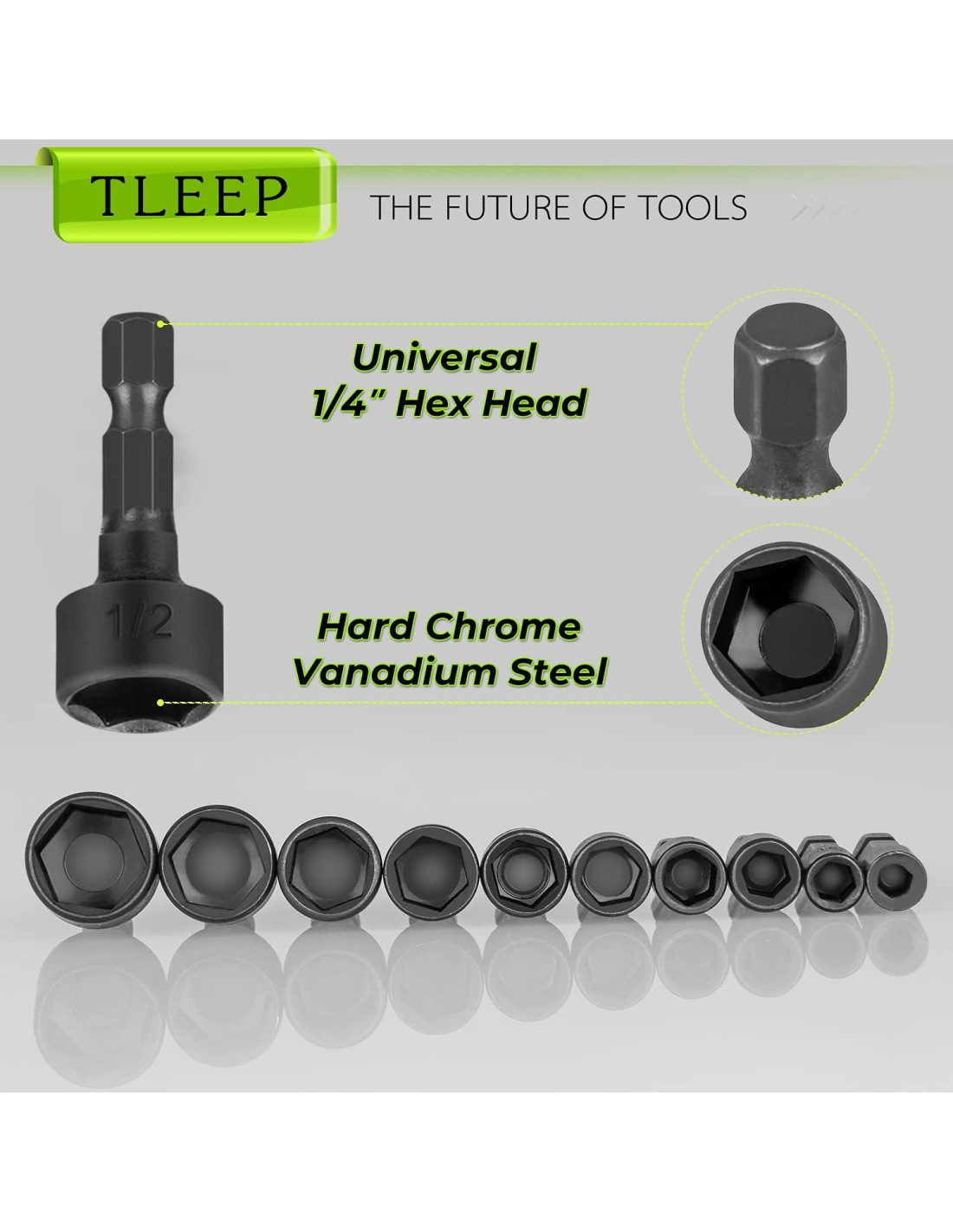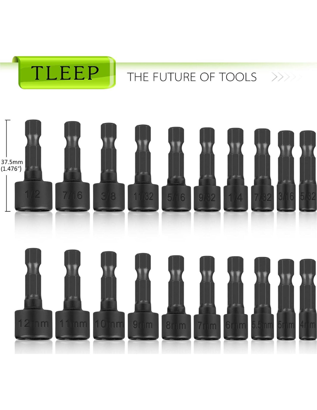 - SAE y Métrico, Juego de 20 Piezas de Diferentes Tamaños de Destornillador para Taladro, Satisface Todas Tus Necesidades Diarias: Pequeñas herramientas de gran satisfacción. Juego de 10PCS de destornillador de impacto (Estándar): 1/2, 7/16, 3/8, 11/32, 5/16, 9/32, 1/4, 7/32, 3/16, 5/32 pulgadas (12.7, 11.1, 9.5, 8.7, 7.9, 7.1, 6.4, 5.6, 5.1, 4.0 mm); 10PCS Puntas de Destornillador de Tuercas de Potencia (Métrico): 12mm, 11mm, 10mm, 9mm, 8mm, 7mm, 6mm, 5.5mm, 5mm, 4mm. ¡Dedos arriba!