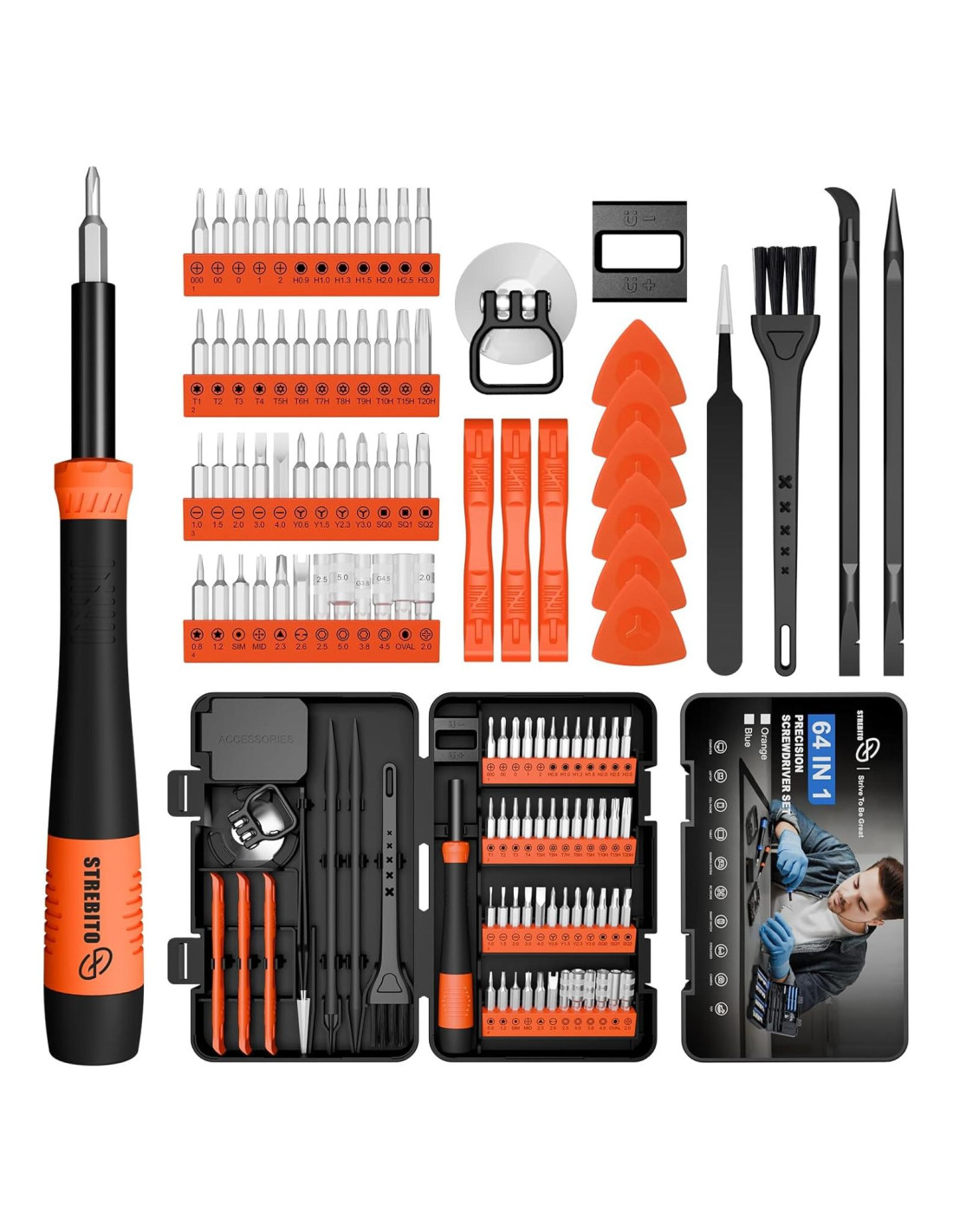 - Calidad Premium y Garantía: STREBITO fabrica un juego de destornilladores de calidad premium y de grado profesional. Las puntas de precisión están mecanizadas CNC para ser precisas, hechas de acero de cromo-vanadio 60HRC que resiste la abrasión, oxidación y corrosión. Este juego de micro destornilladores está cubierto por nuestra garantía de por vida. Si tienes algún problema con la calidad o el uso, simplemente contacta al servicio al cliente para obtener ayuda con la solución de problemas.