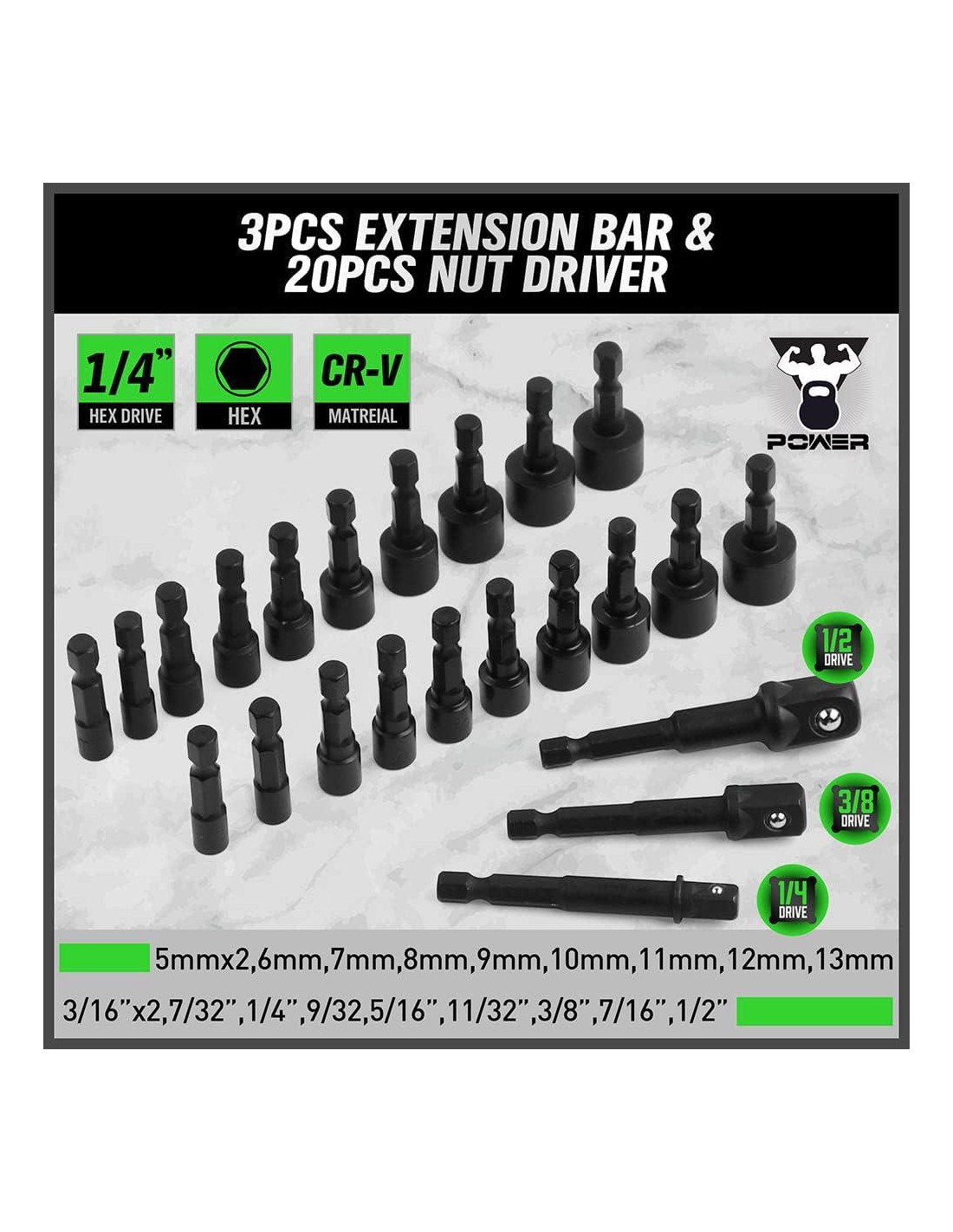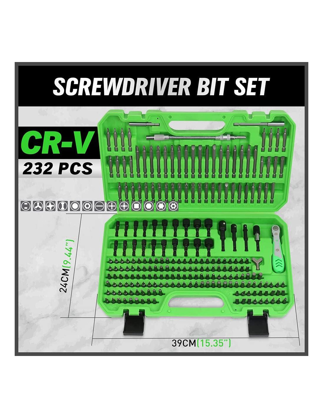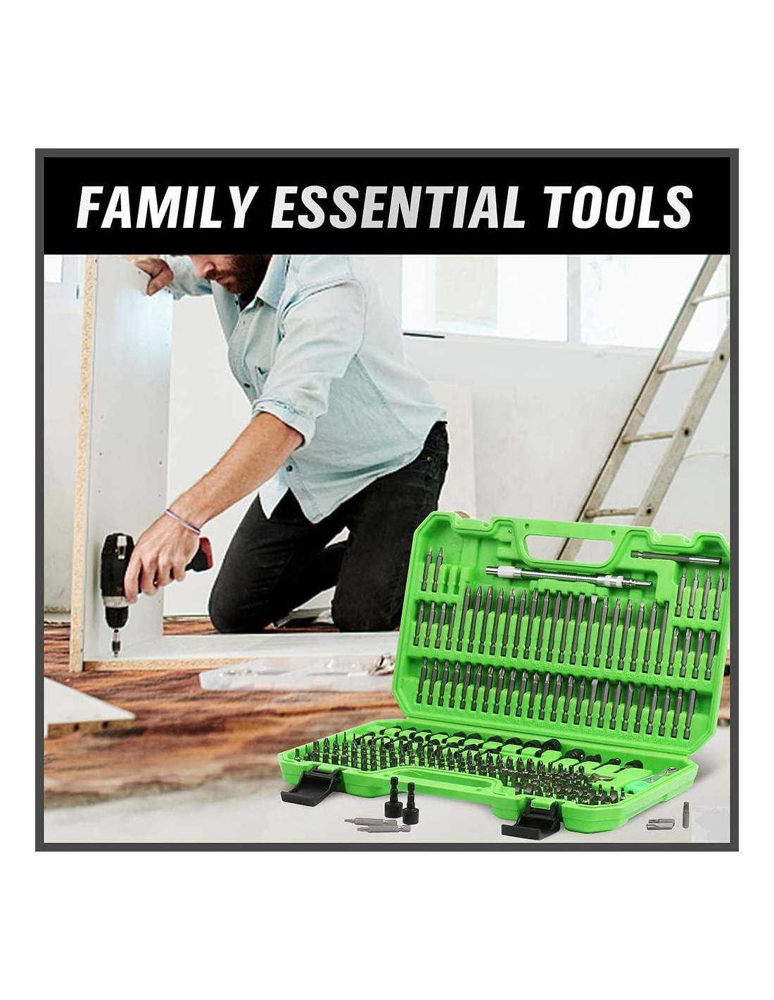 - Contiene puntas definitivas (Phillips, plana ranurada, cuadrada, Tri-wing, Pozi drive, Spanner, Torq, estrella Torx, cabeza hexagonal, Torx estrella a prueba de manipulaciones), llave de carraca, soporte de puntas, liberación rápida de puntas, barras de extensión, soportes magnéticos de puntas y otras puntas especiales de uso diario.