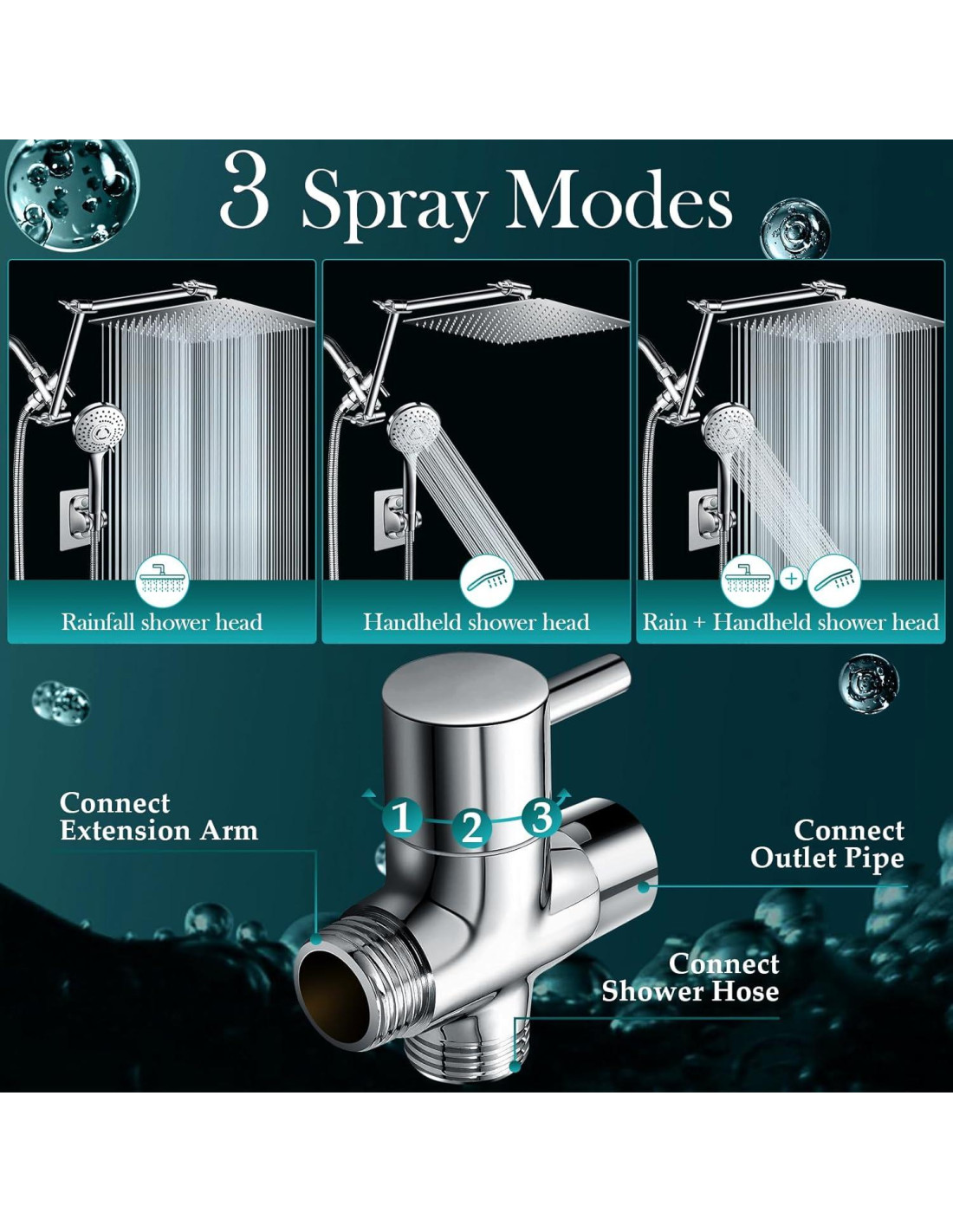 - Combo de Cabezal de Ducha de 12 Pulgadas: El Cabezal de Ducha de Lluvia de 12" es una combinación de alto rendimiento y excelente. La combinación del cabezal de ducha de lluvia y el cabezal de ducha de mano crea una experiencia de ducha verdaderamente indulgente, proporcionando una experiencia de baño satisfactoria y agradable cada vez.