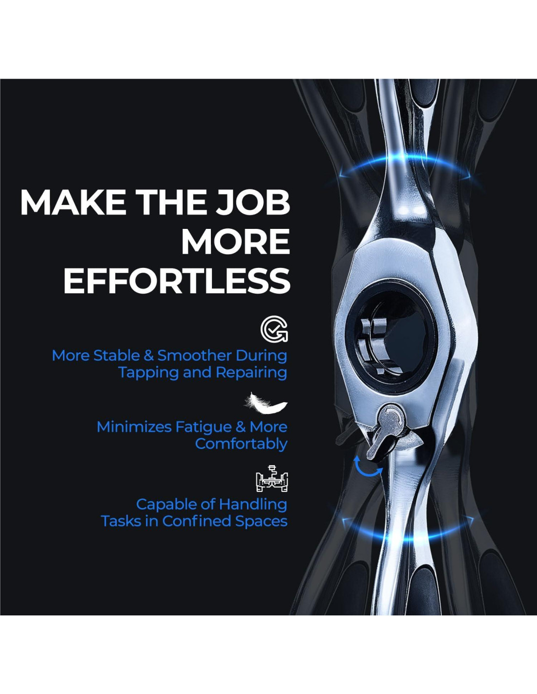 - HACER EL TRABAJO MÁS FÁCIL - en comparación con una llave normal, las MANIJAS DE T CON RETRACCIÓN REVERSIBLE tienen las ventajas de rotación unidireccional y transmisión eficiente, permitiendo a los usuarios controlar fácilmente la dirección y velocidad de rotación mientras generan mayor fuerza con menos esfuerzo. la llave de trinquete toolant tiene un arco de oscilación de 5 y cuenta con una palanca de reversa para eliminar el giro de mano a mano, el sistema de guía de bloqueo por torsión reduce el 'retroceso' de la guía de matriz y mantiene las matrices centradas mientras corta;