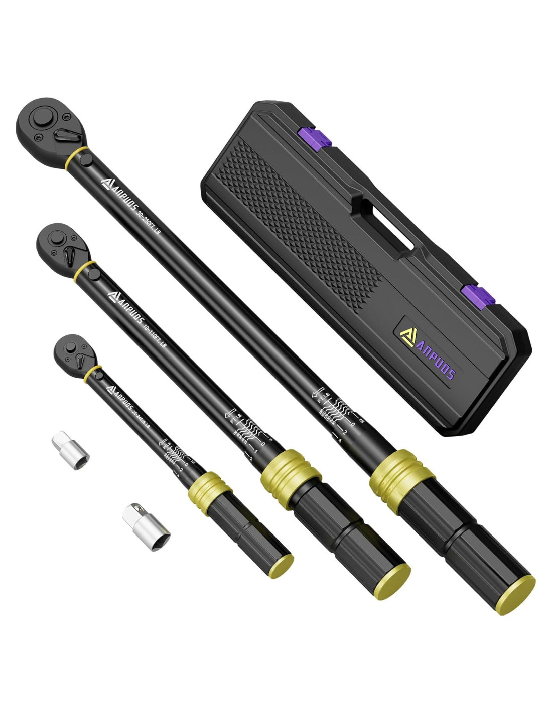 - Amplia Aplicación: Este juego de llaves de torque se puede aplicar ampliamente. Son adecuadas para tuercas y tornillos en diversas ocasiones, adecuadas para la instalación de máquinas así como para el mantenimiento de bicicletas, coches, camiones o motocicletas. También proporcionamos dos adaptadores: 1/4'' a 3/8'' y 3/8'' a 1/2''. Ofrecemos más opciones para usted. Cada juego de llaves de torque incluye un certificado de calibración con número de serie rastreable.