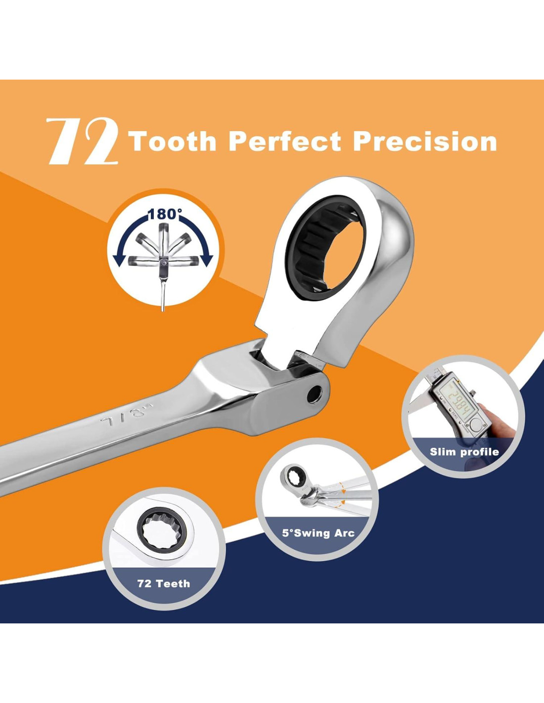 - Los engranajes de carraca de 72 dientes solo necesitan un arco de oscilación de trabajo de 5, cabeza flexible/pivotante de 180, adecuada para cualquier espacio estrecho.