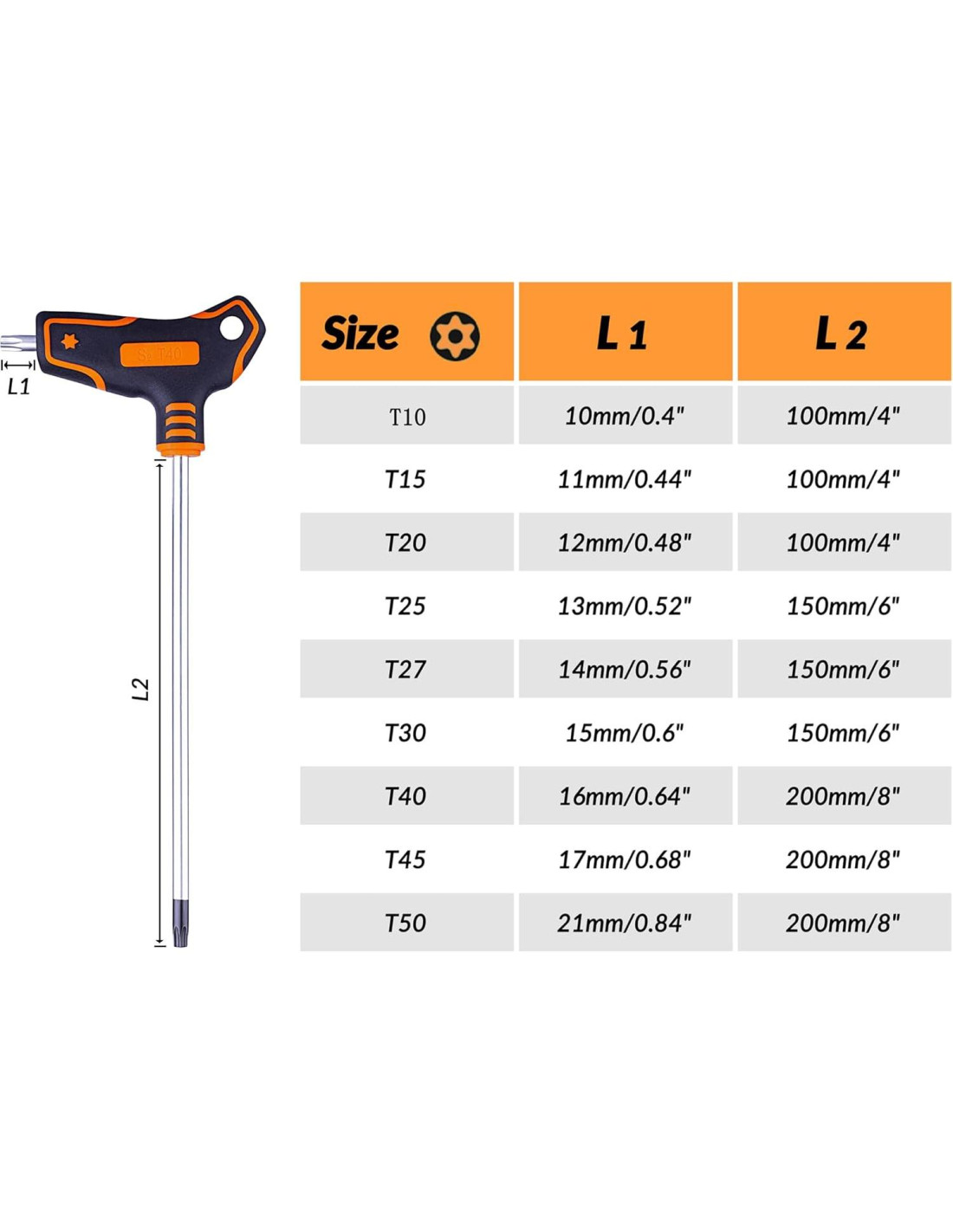- Tamaños Populares Incluye tamaños torx: T10/T15/T20x100mm, T25/T27/T30x150mm, T40/T45/T50x200mm. Empacado en caja de almacenamiento reutilizable.