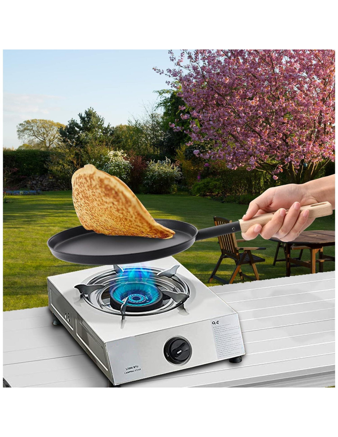 - 8 pulgadas, Adecuada para Varios Tipos de Cocción, Sartén para Crepas de Calentamiento Rápido--- La sartén de aluminio asegura un calentamiento rápido y uniforme, lo que ahorra energía y tiempo. Adecuada para todo tipo de cocinas (incluyendo estufas de gas, estufas de leña, parrillas, planchas). (NO APTA PARA HORNO) Cuando estés acampando, esta sartén de parrilla te ayudará a cocinar alimentos sabrosos.