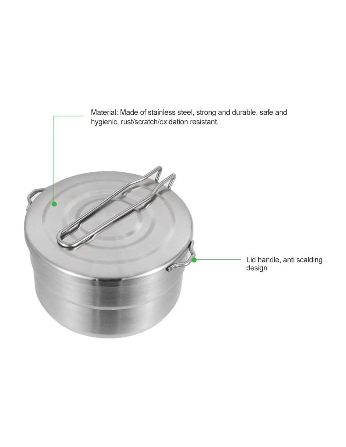 - [Material] La Olla de Cocina para Camping está hecha de acero inoxidable, fuerte y duradero, seguro e higiénico, resistente a la oxidación/rasguños/oxidación.