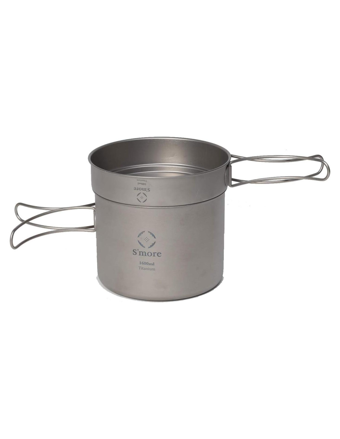 Juego de Cocina de Titanio S'more, Utensilios de Cocina Ecológicos y Ultraligeros para Acampar, Olla de 1600ml y Sartén de 500ml 2 en 1 con Mango Plegable para Hacer Senderismo, Viajar y Hacer Picnics (Grande)
