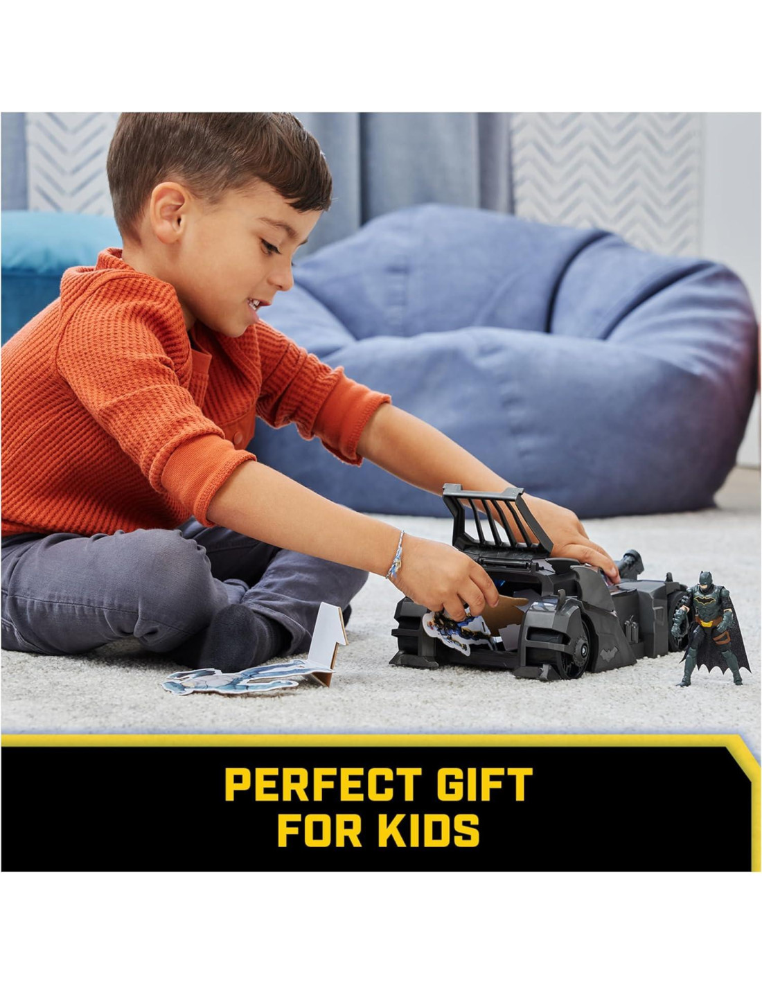 - JUEGO DE BATMÓVIL CRUSADER: Deja que tu hijo experimente emocionantes aventuras en Gotham City con el Batmóvil Crusader. Este set incluye una figura de acción exclusiva de Batman de 4 pulgadas y 3 figuras de supervillanos de papel.