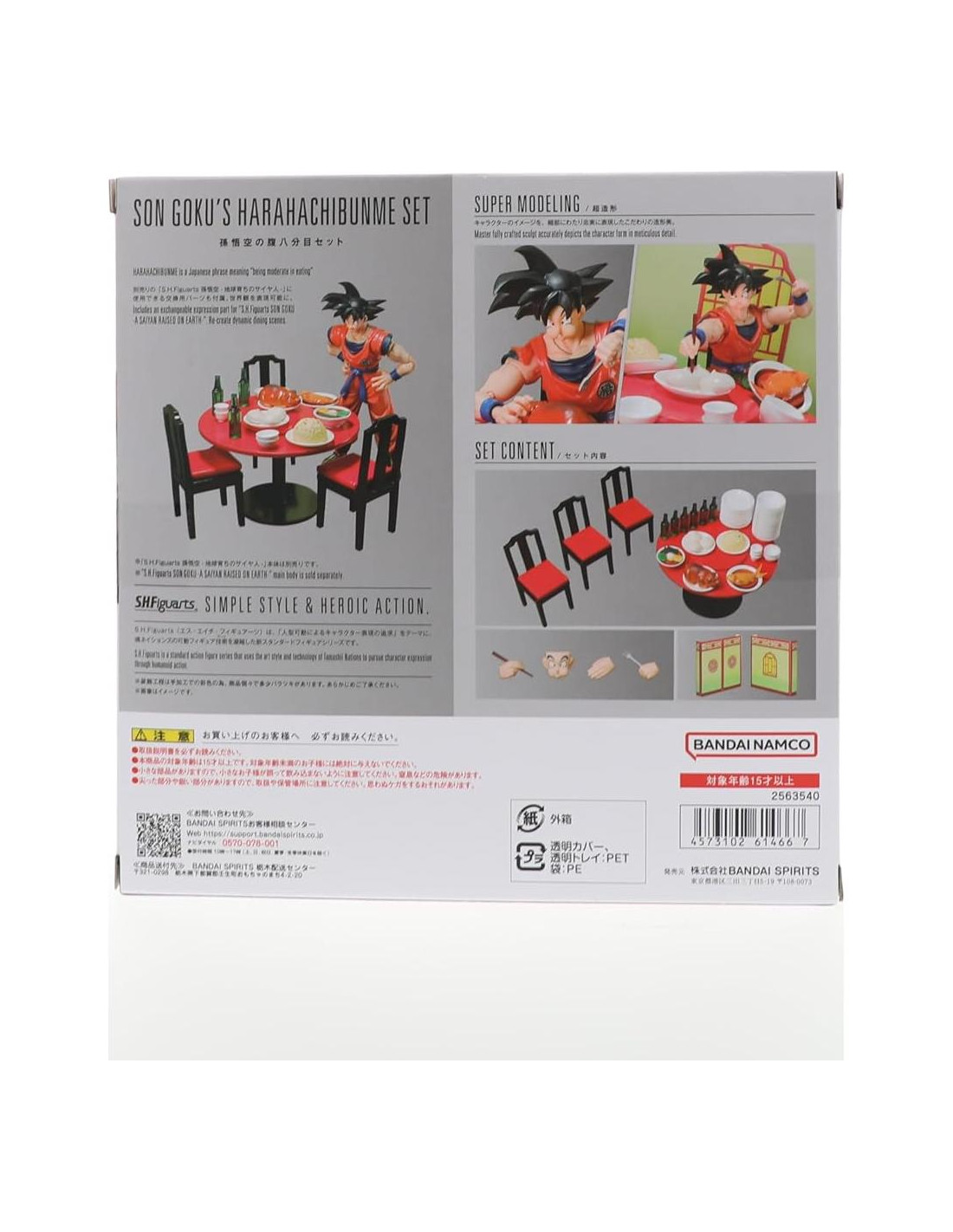- [Contenido del Set] Hoja de fondo, Una mano derecha y dos manos izquierdas opcionales para S.H.Figuarts Son Goku - Un Saiyajin Criado en la Tierra - (se vende por separado), Parte de expresión para S.H.Figuarts Son Goku - Un Saiyajin Criado en la Tierra- (se vende por separado), Set de muebles, Set de comida, Set de vajilla.