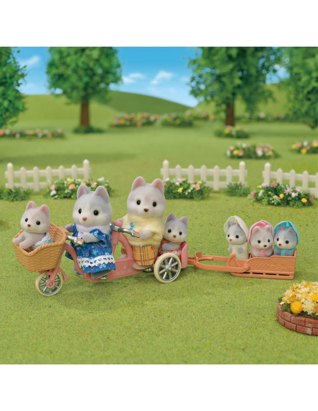 - Conoce a la Familia Husky, una familia de perros Husky de pelaje gris con orejas redondeadas y colas esponjosas. Incluye a la madre Avril, al padre Vincent y a las trillizas Rae, Drake y Nelly en el trineo.