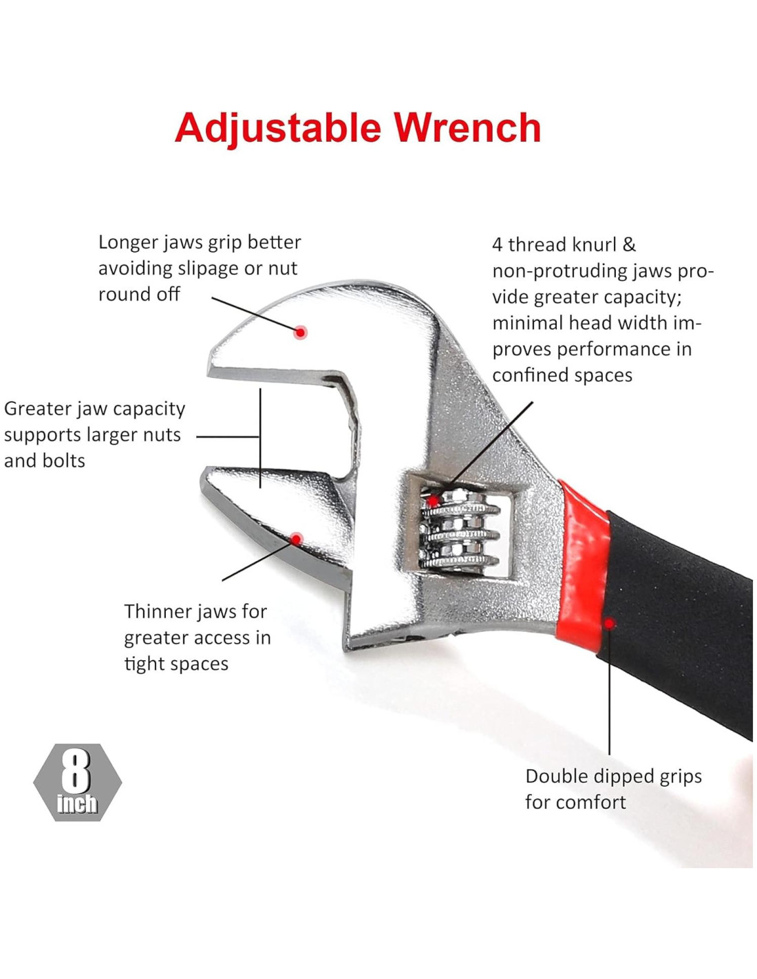 - Siete tipos básicos de alicates y llave ajustable en múltiples tamaños para usar en casi cualquier objeto.