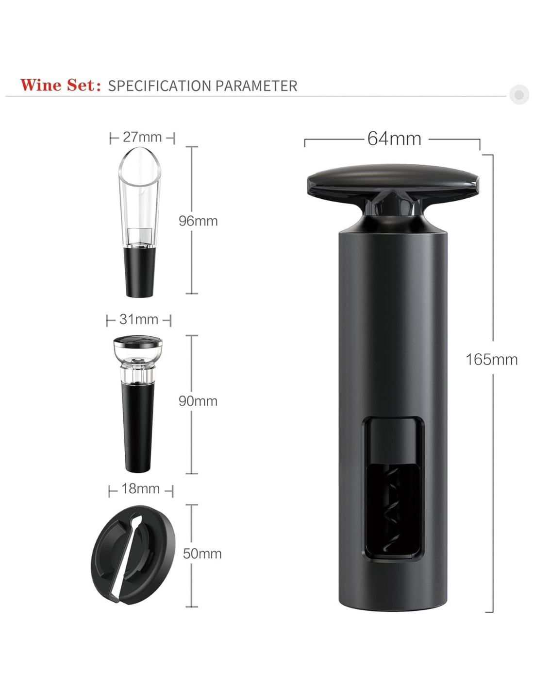 - Kit 4 en 1: Incluye de manera pensada un sacacorchos, vertedor aireador, tapones de vacío y un cortador de papel de aluminio/base