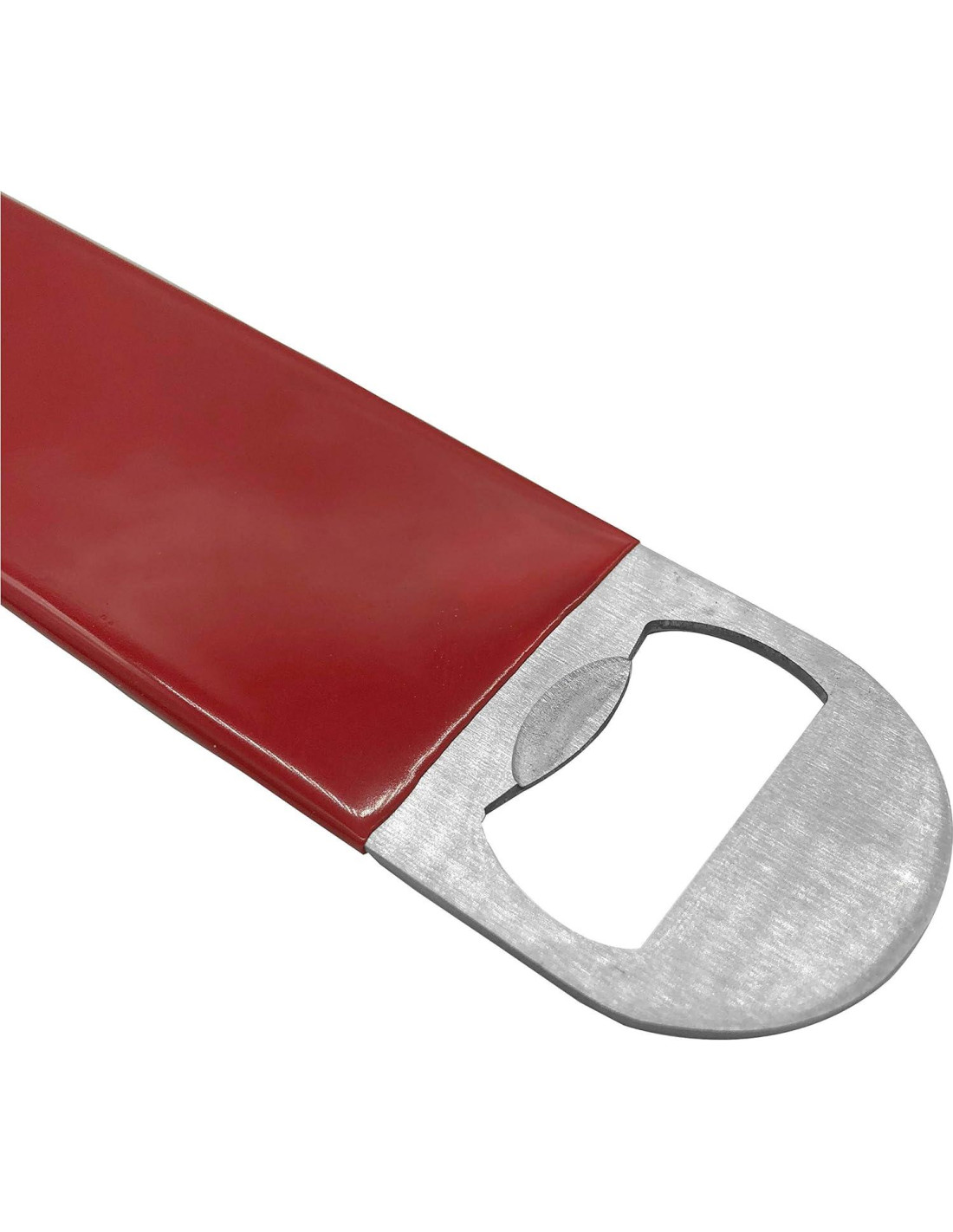 Color: rojo, negro y azul Estos abrebotellas planos de mano están hechos de acero inoxidable, lo que los hace de alta resistencia. Cada extremo de apertura tiene una forma diferente para acomodar varios tipos de botellas, recubiertos de goma vinílica y sellados para una protección adicional.