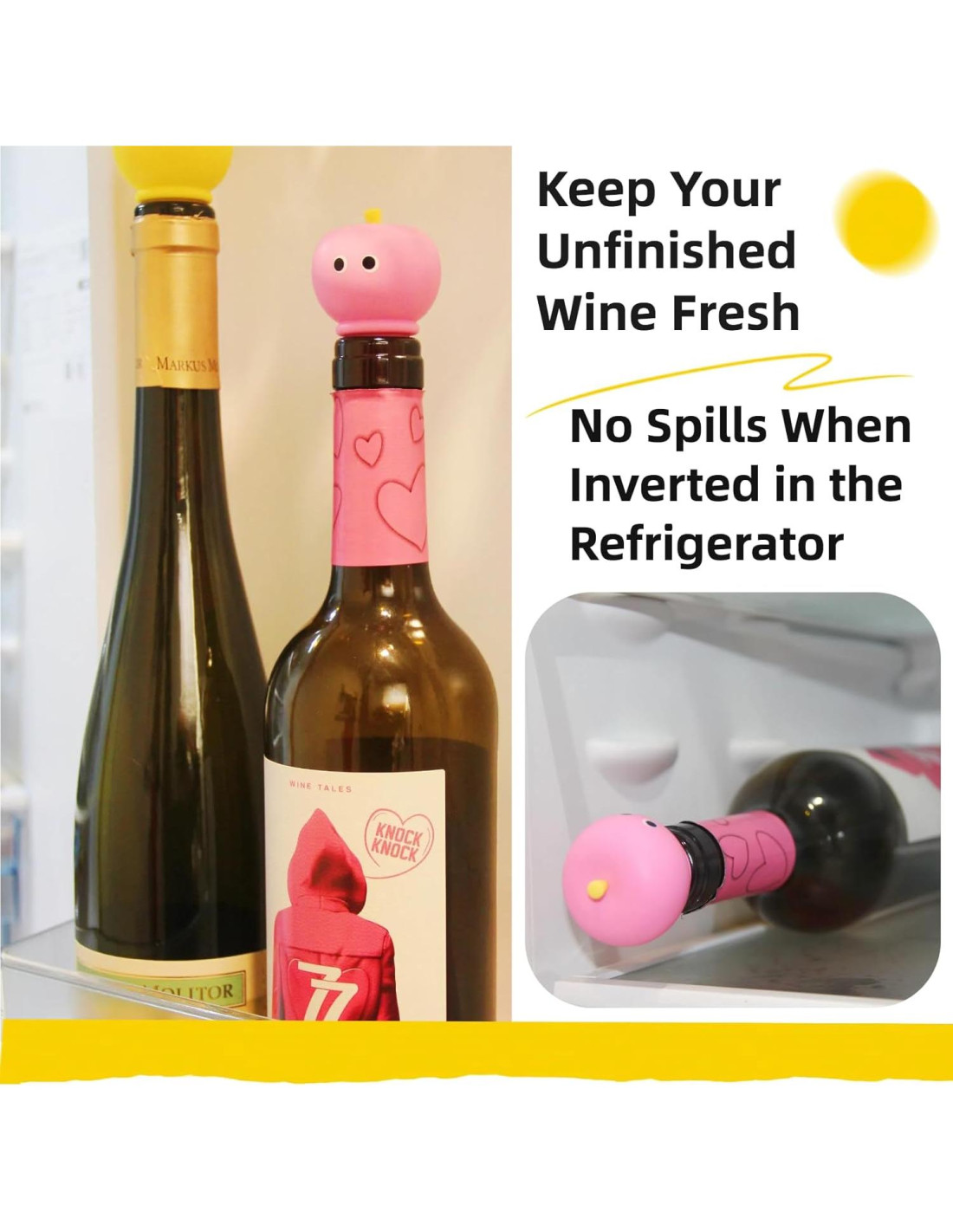 - [Diseño Especial y Regalos Exquisitos] : Nuestros tapones de vino vienen en un bonito diseño de manzana de dibujos animados y tres colores diferentes, añadiendo un toque de sofisticación a tu colección de vino. Son regalos perfectos para amantes del vino, fiestas de inauguración o cualquier ocasión especial.