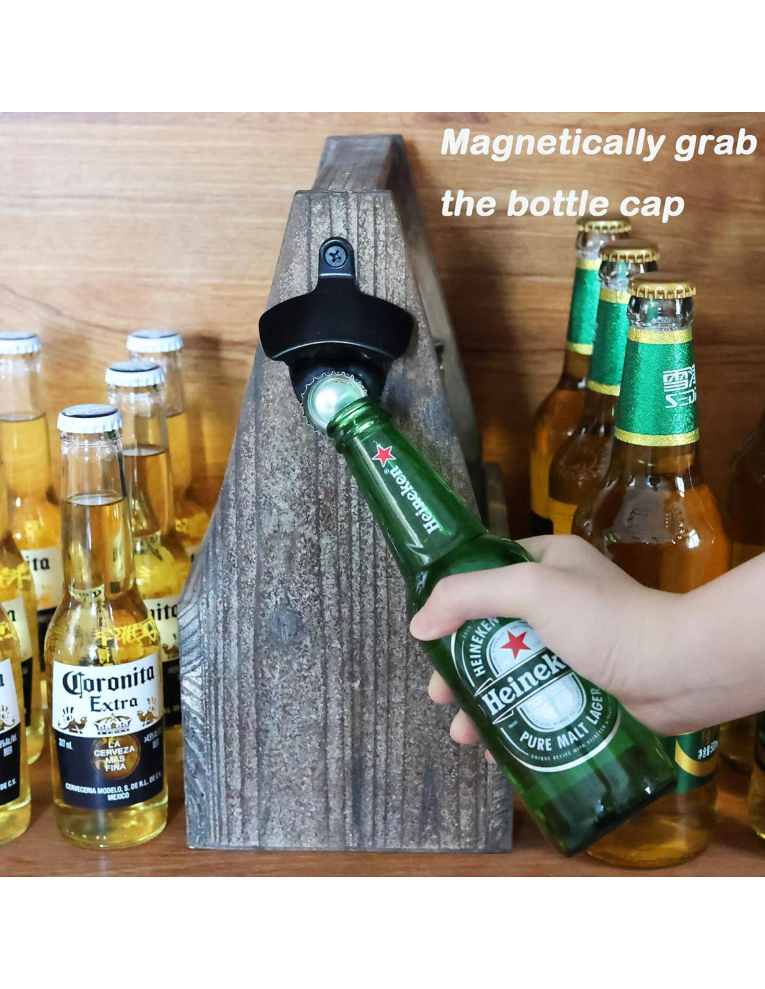 - Ocasión aplicable: El abrebotellas magnético montado en caddy de madera se puede instalar tanto en interiores como en exteriores, incluyendo garaje, establo, cabaña, bar en el sótano, piscina, cobertizo, choza, cocina, patio, alquiler vacacional, y también es perfecto para la cueva de hombres