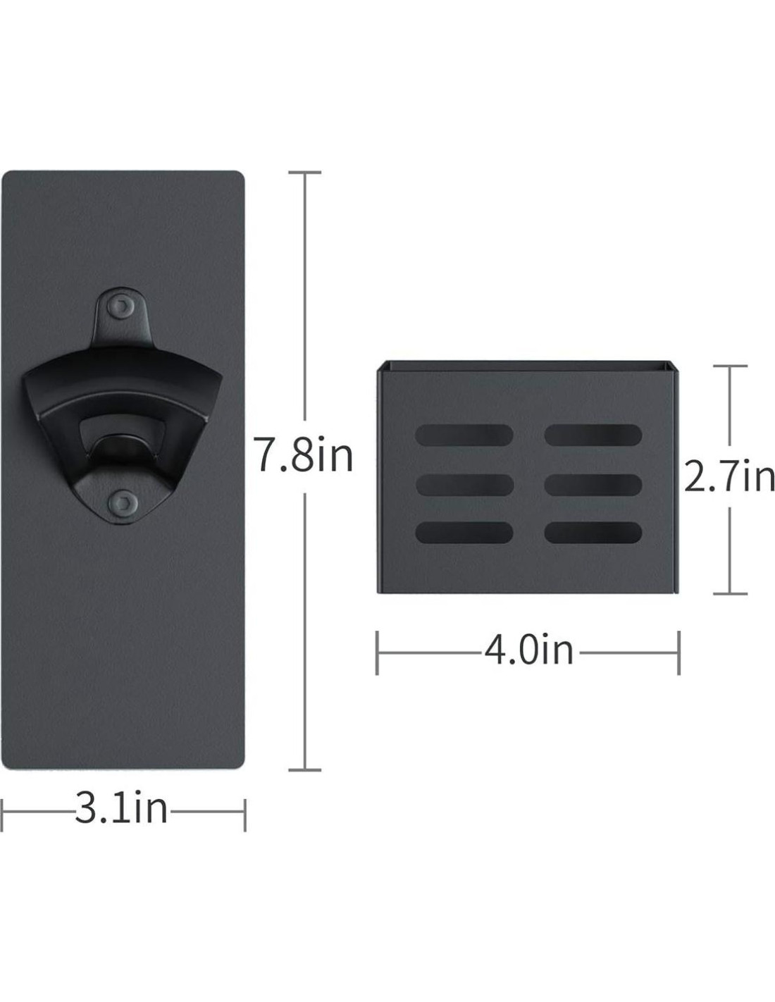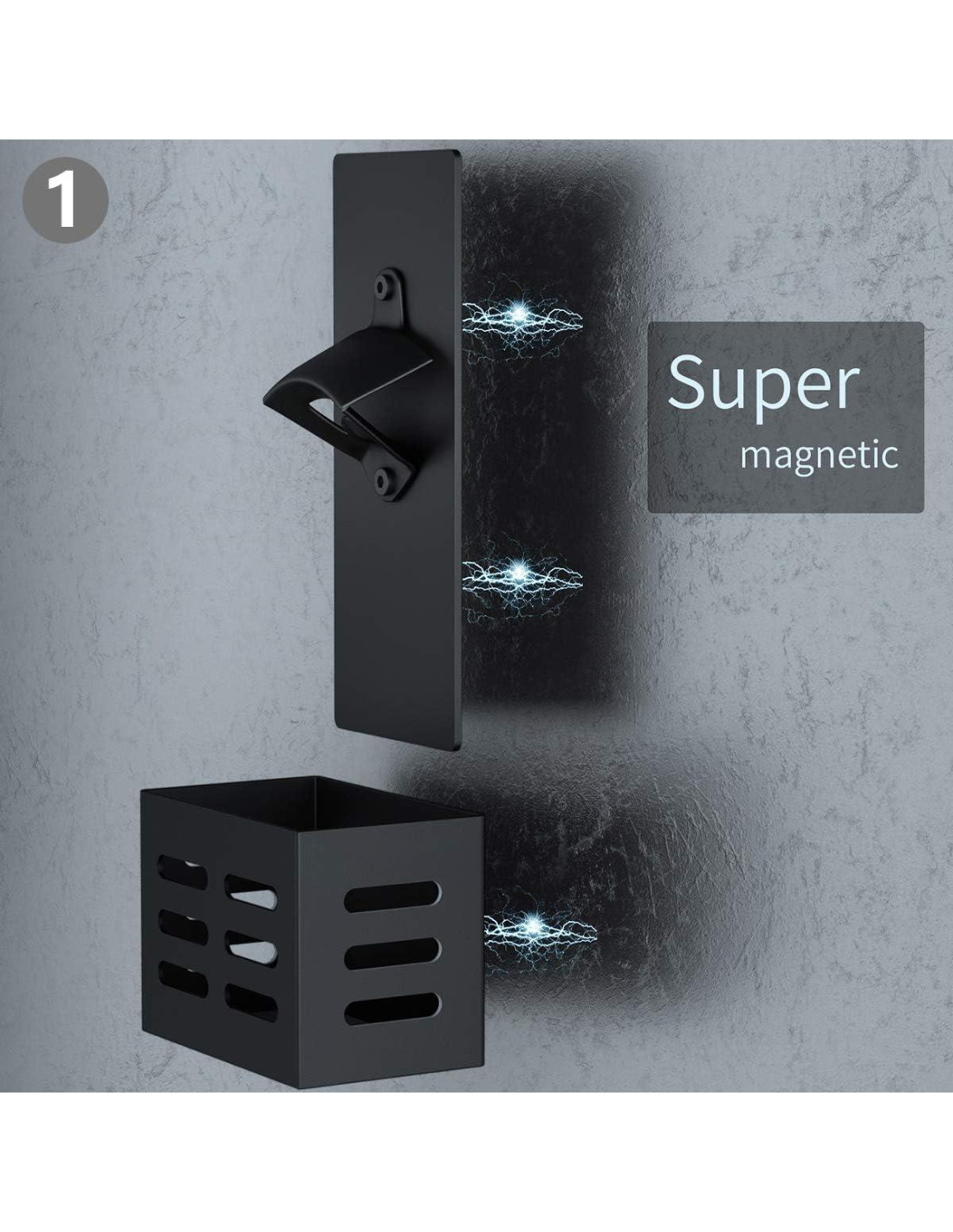 - MATERIAL: El recipiente recogedor de tapas está hecho de acero al carbono, y el abrebotellas está hecho de acero inoxidable, fuerte y duradero, no fácil de deformar.