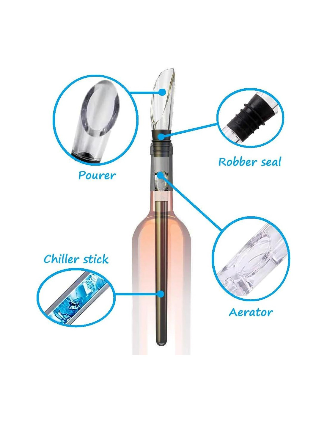 - DISEÑO ULTRA SEGURO Y DURADERO - Los enfriadores de vino para botellas están hechos de acero inoxidable de grado alimenticio y acrílico, este enfriador es libre de BPA, 100% no tóxico y seguro de usar en todos los vinos y bebidas; ¡disfruta de un uso duradero y sin preocupaciones! Mejor enfriador de vino y aerador enfriador de botellas de vino stick de hielo.