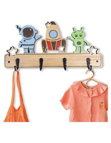 Este encantador gancho para toallas de niños es perfectamente adecuado para guarderías, dormitorios, pasillos o salas de juegos, añadiendo un toque de fantasía y funcionalidad. Fabricado en madera de haya premium, es resistente y duradero. Con un diseño vibrante y juguetón que presenta elementos de dibujos animados coloridos, despierta la imaginación mientras organiza artículos cotidianos como ropa, abrigos y mochilas. Fácil de instalar con el hardware incluido.