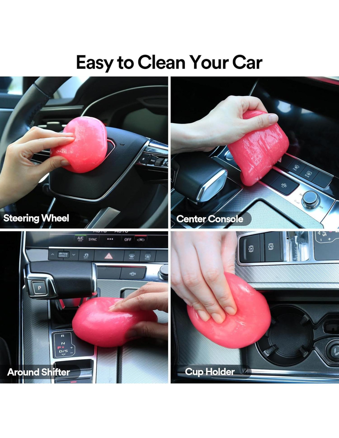 - Múltiples Usos: La masilla de limpieza de autos reutilizable no solo puede limpiar las ventilaciones del auto, el tablero, el portavasos, la palanca de cambios, sino que también es excelente para limpiar el teclado de la computadora, la laptop y el escritorio de la oficina. Incluso puedes usar el goo de limpieza de autos entre las grietas de los electrodomésticos.