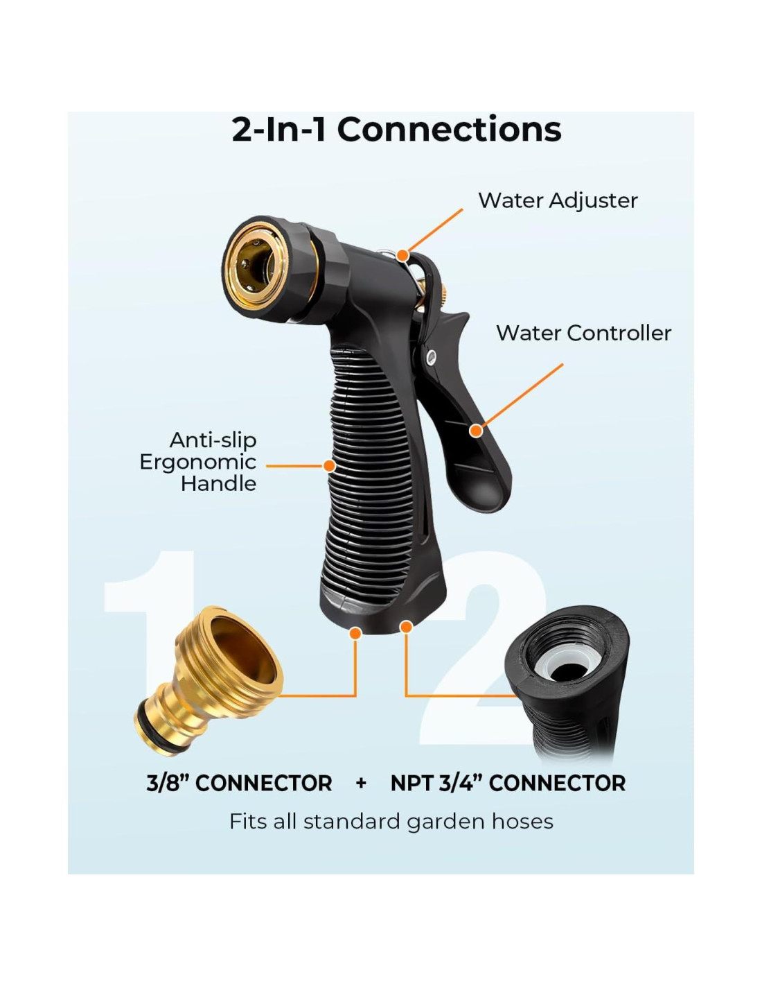 - [Se Conecta a Cualquier Manguera de Jardín] Adjuntar el pulverizador a la manguera de jardín con un conector de latón de 1/4 de pulgada (0.64 cm) es simple y rápido, sin necesidad de complicados accesorios adicionales para la manguera. Tu manguera de jardín ahora es un lavador de baja presión con espuma, produciendo burbujas espesas al instante.