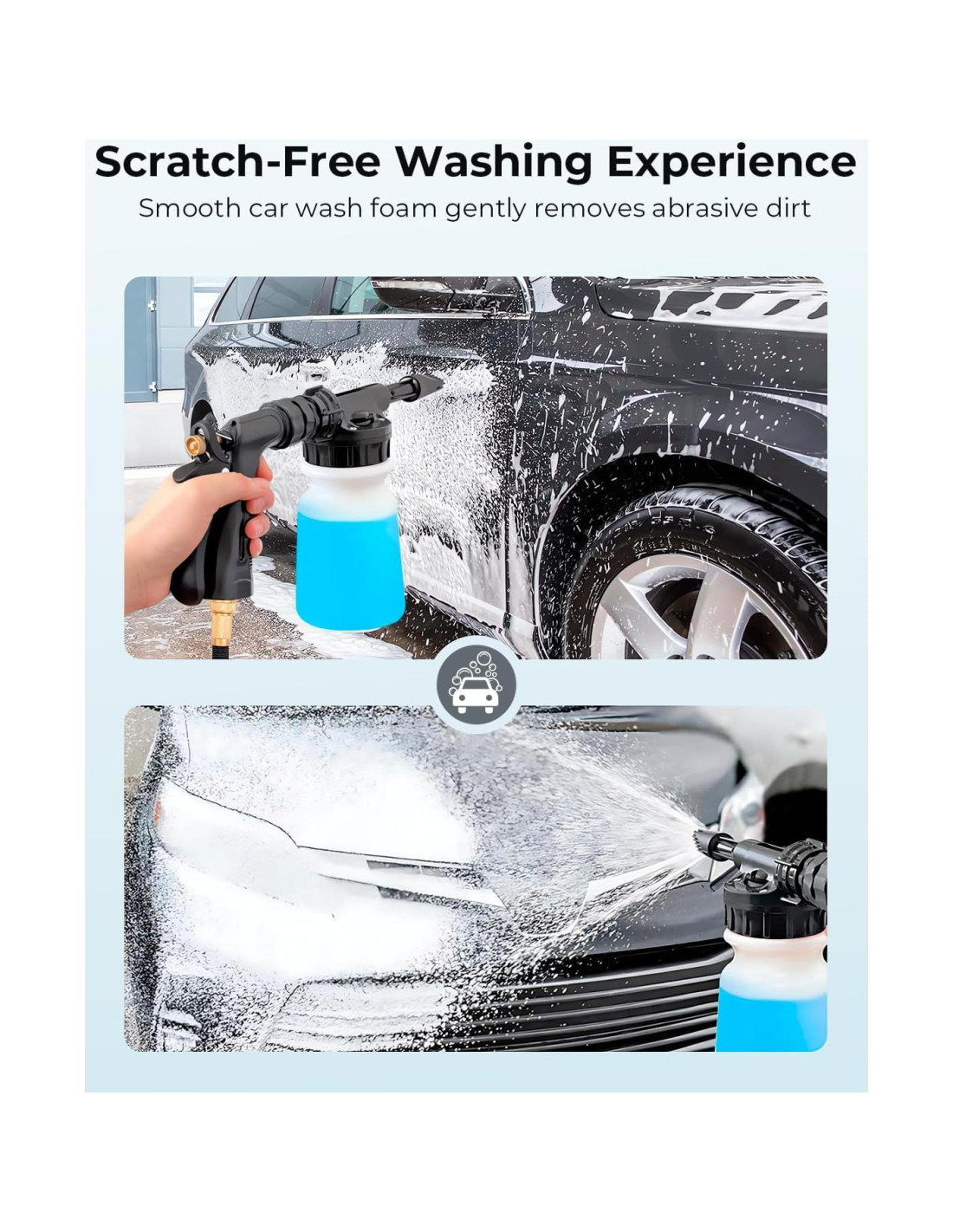 - [Concentración de Espuma de Jabón Ajustable] El pulverizador de espuma mezcla agua de la manguera con la solución de jabón para formar la espuma de lavado de autos perfecta y espesa. Con 6 configuraciones de pulverización de espuma y una pulverización de enjuague, la concentración de espuma se puede seleccionar según tus necesidades.