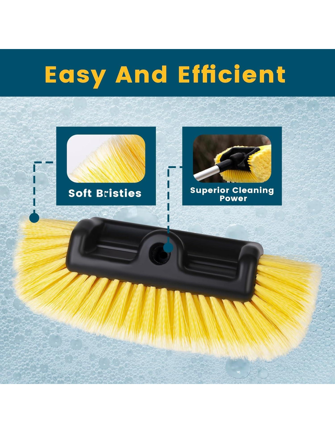- Suave con Tu Vehículo: Mientras que las cerdas del cepillo son duras con la suciedad y la mugre, son suaves con la superficie de tu vehículo. Ten la seguridad de que nuestra cabeza de cepillo para lavar carros limpiará tu vehículo a fondo sin rayar ni causar ningún daño.