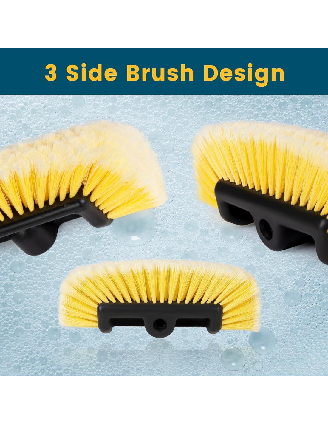 - Diseño Innovador de Cepillo de 3 Lados: Equipado con un diseño único de cepillo de 3 lados, nuestra cabeza de cepillo suave para lavar carros proporciona una cobertura completa, alcanzando rincones estrechos y cubriendo superficies más grandes con facilidad. Es como tener tres cepillos trabajando juntos, haciendo que tu proceso de lavado de autos sea más rápido y eficiente.