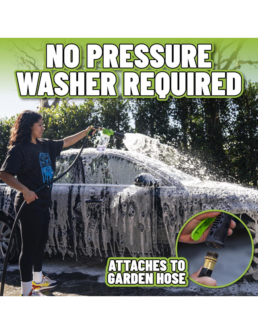 Transforma el lavado de tu auto con el TORQ Foam Blaster 6 Pro. Se conecta rápidamente a tu manguera de jardín para rociar espuma espesa, levantando la suciedad y la mugre sin rayar. Perfecto para lavados rápidos y divertidos sin necesidad de lavadora a presión, seguro para todos los acabados, desde pintura hasta plástico y vidrio. Haz que cada lavado de auto se sienta a nivel profesional con una rápida mejora. El Foam Blaster 6 Pro entrega una capa de espuma espesa usando tu manguera de jardín, sin necesidad de lavadora a presión, para un detallado rápido, eficiente y divertido en casa. Cubre tu vehículo con espuma espesa que levanta suavemente la suciedad y la mugre. El Foam Blaster 6 Pro ayuda a minimizar marcas de remolino y rayones al reducir el contacto directo con escombros ásperos durante el lavado. ¿No tienes lavadora a presión? No hay problema. Simplemente conecta el Foam Blaster 6 Pro a tu manguera de jardín y lanza espuma espesa al instante. Es la forma más fácil de obtener resultados profesionales sin ningún equipo pesado. Controla tu limpieza con un giro. La boquilla ajustable te permite elegir tu nivel de espuma perfecto, desde una ligera neblina hasta una espesa manta, facilitando el lavado de cualquier tipo de vehículo o superficie de manera segura. El TORQ Foam Blaster 6 Pro mejora tu lavado de auto sin necesidad de equipo adicional. Simplemente conéctalo a tu manguera, gira el dial y rocía. Es simple, potente y diseñado para amantes de los autos de cualquier nivel de habilidad.