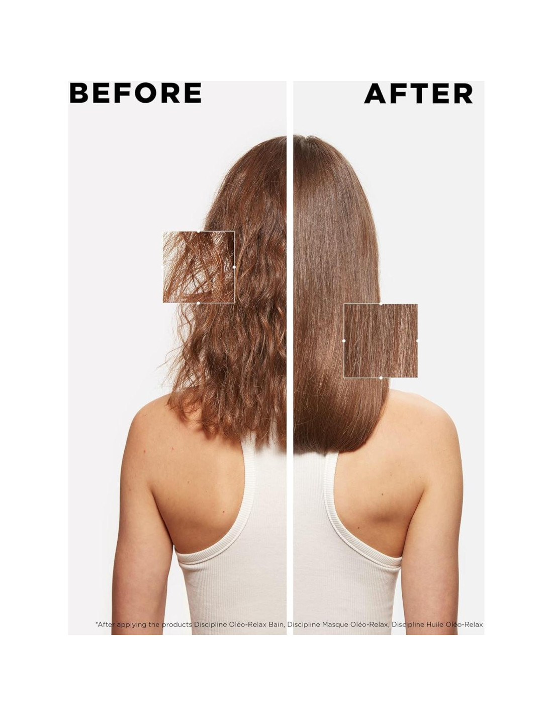 La colección Discipline Oleo-Relax consiste en productos avanzados para alisar el cabello diseñados para cabello encrespado o propenso al encrespamiento, de medio a grueso.