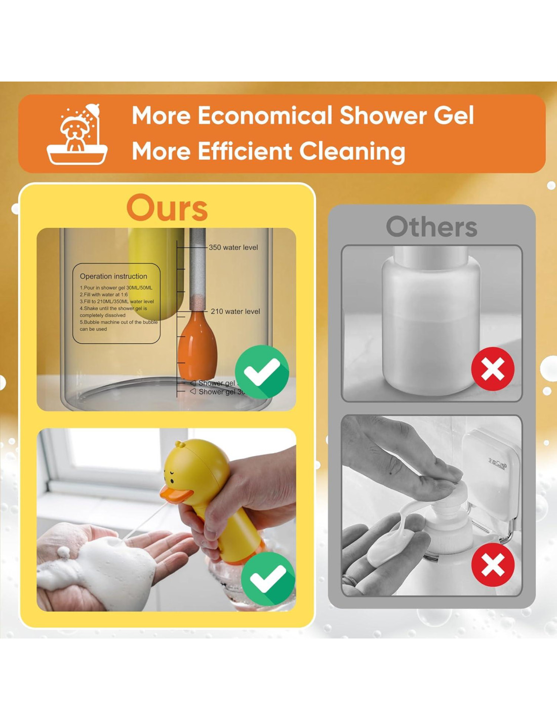 - Espuma densa: El dispensador de espuma eléctrica para mascotas LilyAbeille tiene una forma linda - un pequeño pato amarillo, con una capacidad de 400ML. Una vez que la máquina se activa, rociará automáticamente espuma densa, permitiendo que tu mascota disfrute fácilmente de su propio tiempo de limpieza.