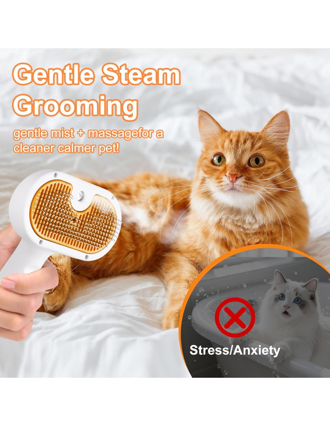 - [3 en 1 Cepillo de Vapor para Gatos] : Herramienta de aseo para mascotas multifuncional que combina las funciones de eliminación de pelo, limpieza y masaje. Mientras elimina el pelo, limpia la suciedad del pelo y la piel. Te permite no preocuparte por limpiar a tu querido mascota todos los días. Nota: Nuestro cepillo para gatos solo convierte agua en rocío y no la calienta.