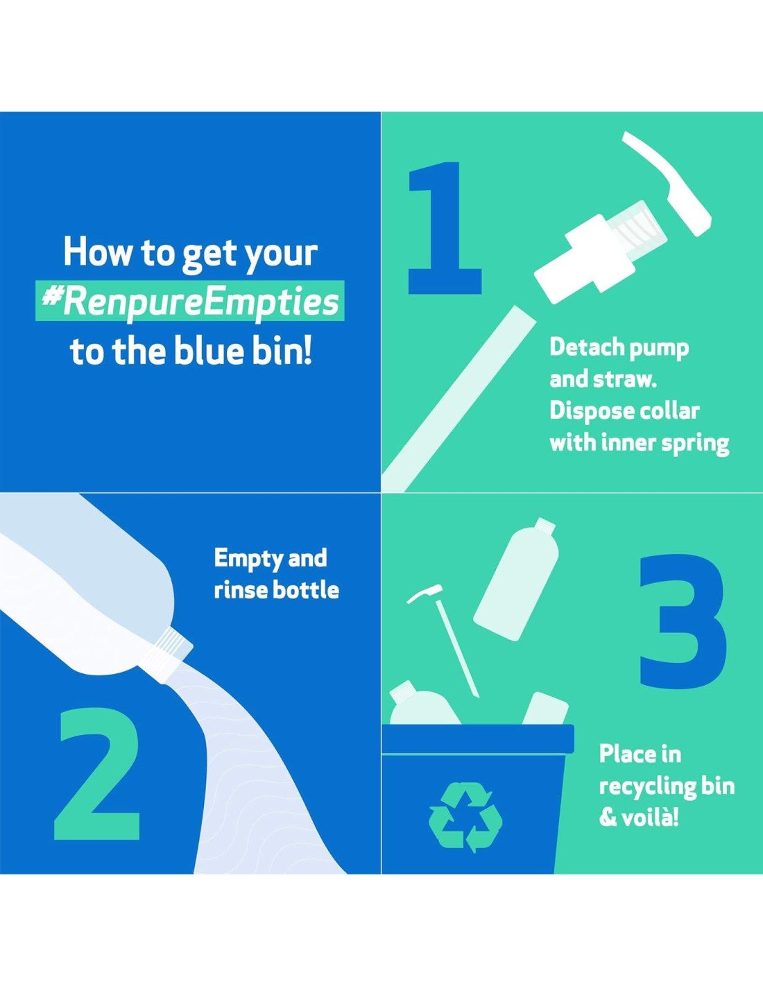 - LA COLECCIÓN RENPURE: Prueba nuestra colección completa de productos de origen responsable y producidos éticamente para una limpieza suave de pies a cabeza, desde acondicionadores nutritivos hasta champús secos y geles de baño.