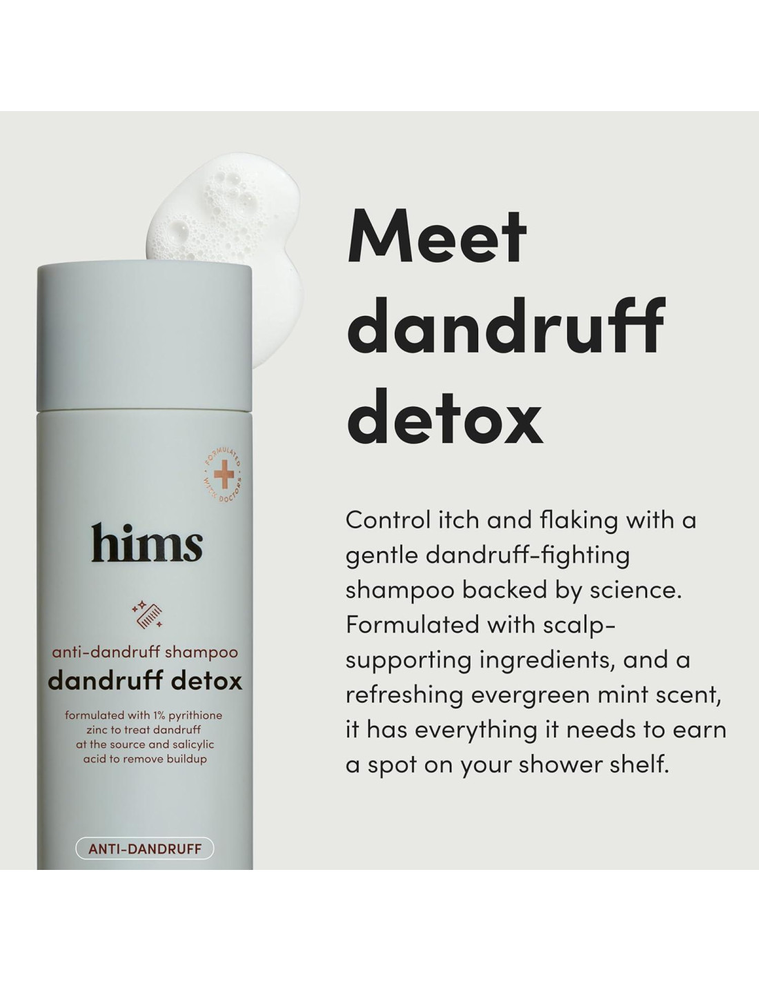 - Formulado por Dermatólogos: El Champú Dandruff Detox de hims para hombres fue formulado con dermatólogos para que te sientas seguro en tu camino
