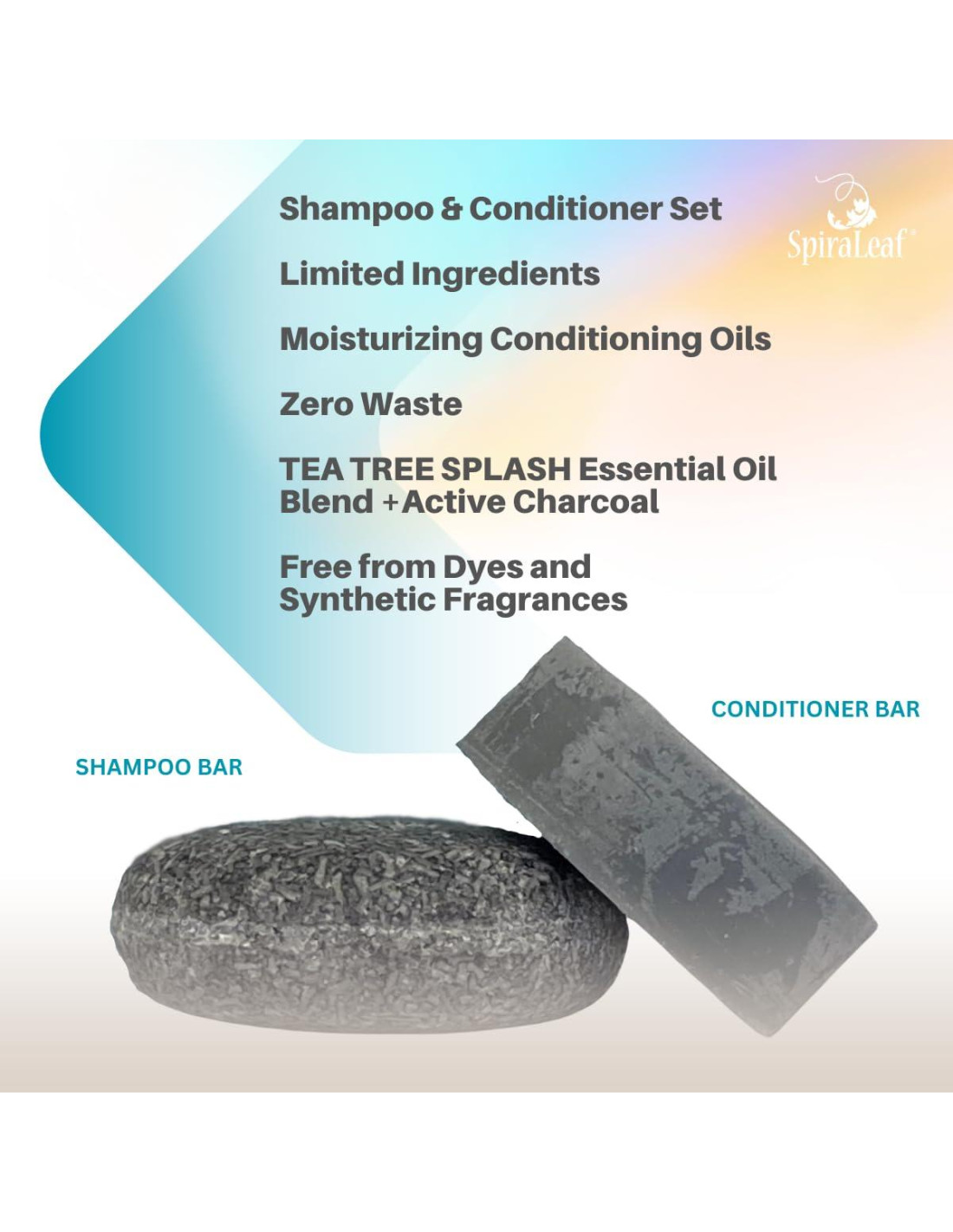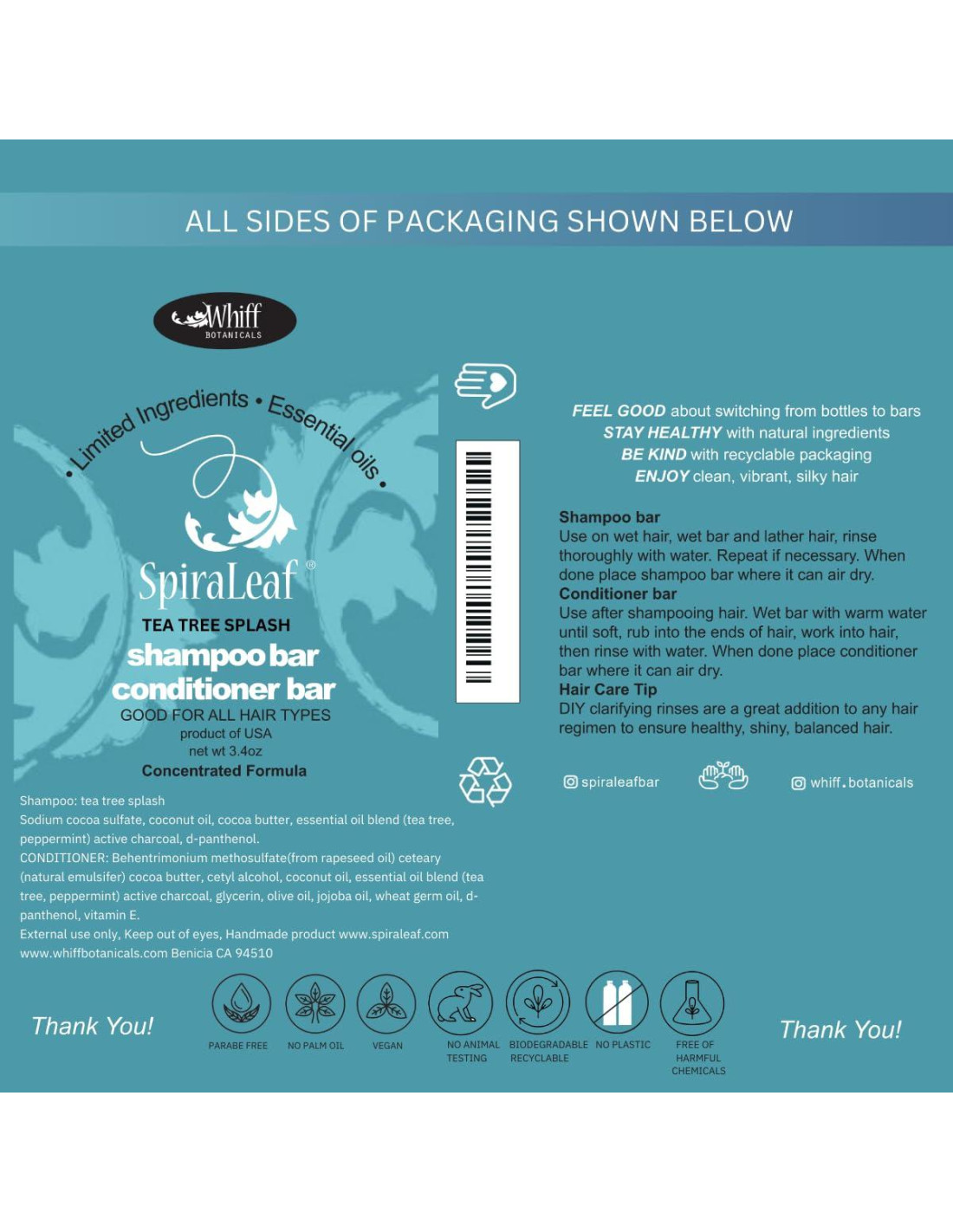 - FÓRMULA ÚNICA: Las barras de champú y acondicionador SPIRALEAF cuentan con ingredientes limitados, aceites esenciales, carbón activo y una fórmula concentrada. Esta mezcla de aceite de árbol de té y carbón activo deja tu cabello y cuero cabelludo frescos y libres de acumulación de grasa. Así, puedes disfrutar de un cabello limpio y sedoso, junto con un empaque limitado y reciclable, barras compactas de larga duración, y barras de cuidado del cabello y afeitado amigables para viajar para todas tus rutinas diarias.