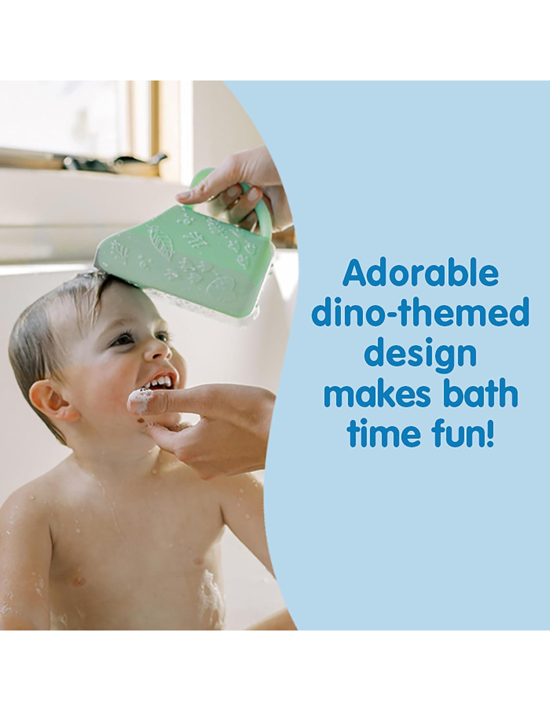 - Taza de Enjuague para Baño. Divertida taza de enjuague con tema de dinosaurio que lava rápidamente y de forma segura el jabón y el champú del cabello del bebé.